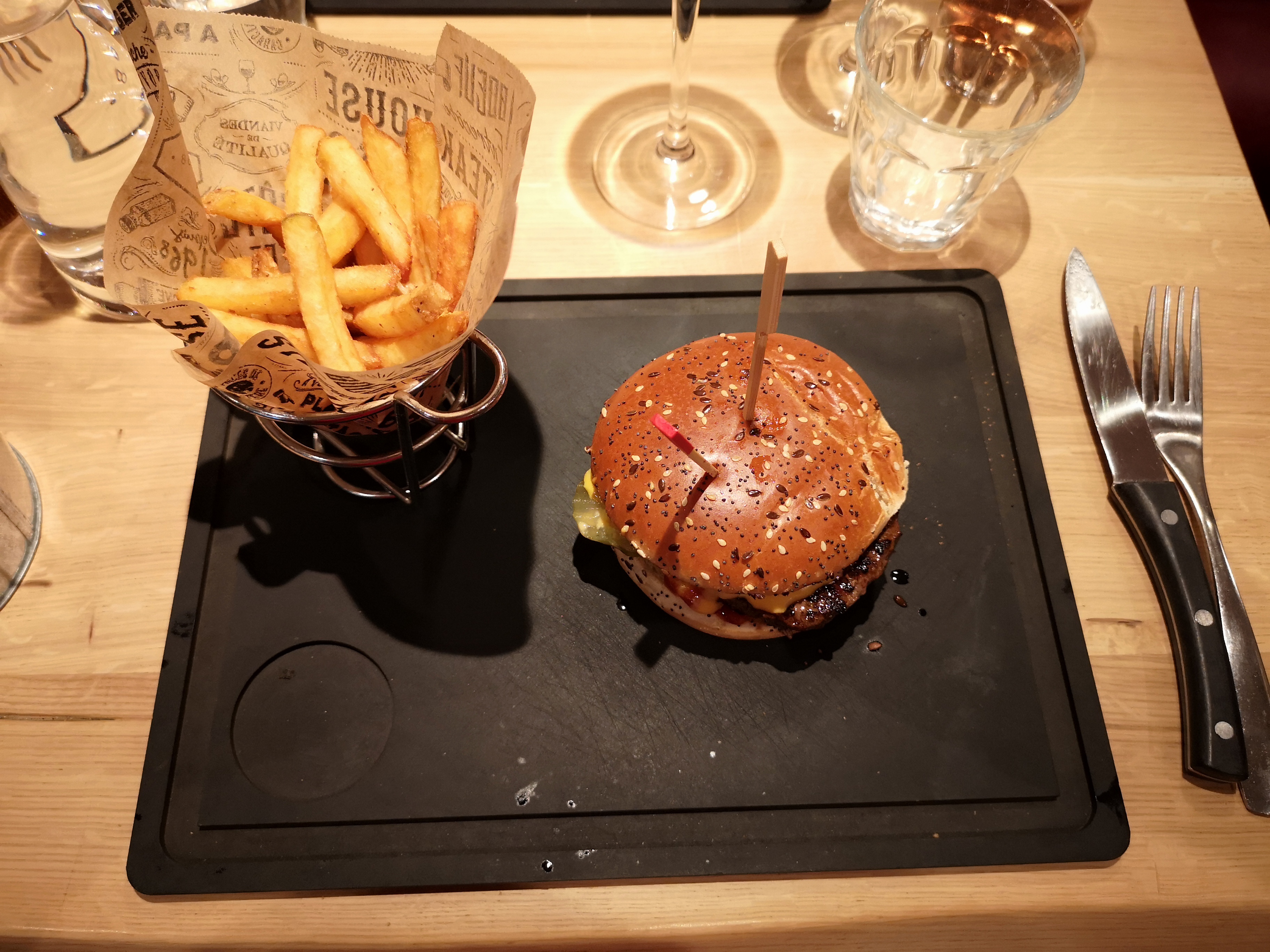 Nous ne recommandons pas ce resto, nous avons été plutôt déçus : burger pas épais avec petite quantité de frites même pas super bonnes. Il a fallu réclamer d'ailleurs, de la sauce, sinon rien. Franchement, le plateau servi faisait pitié ! Quant à l'entrecôte, pareil, le plateau faisait grise mine ! Là aussi, il a fallu réclamer un accompagnement (salade) qui n'était même pas fraîche. Et pour le prix de tout ça...! C'est honteux. Le service lui, laisse à désirer. Serveurs et serveuses pas motivés ça se ressent. Bref, on ne reviendra plus c'est sûr.