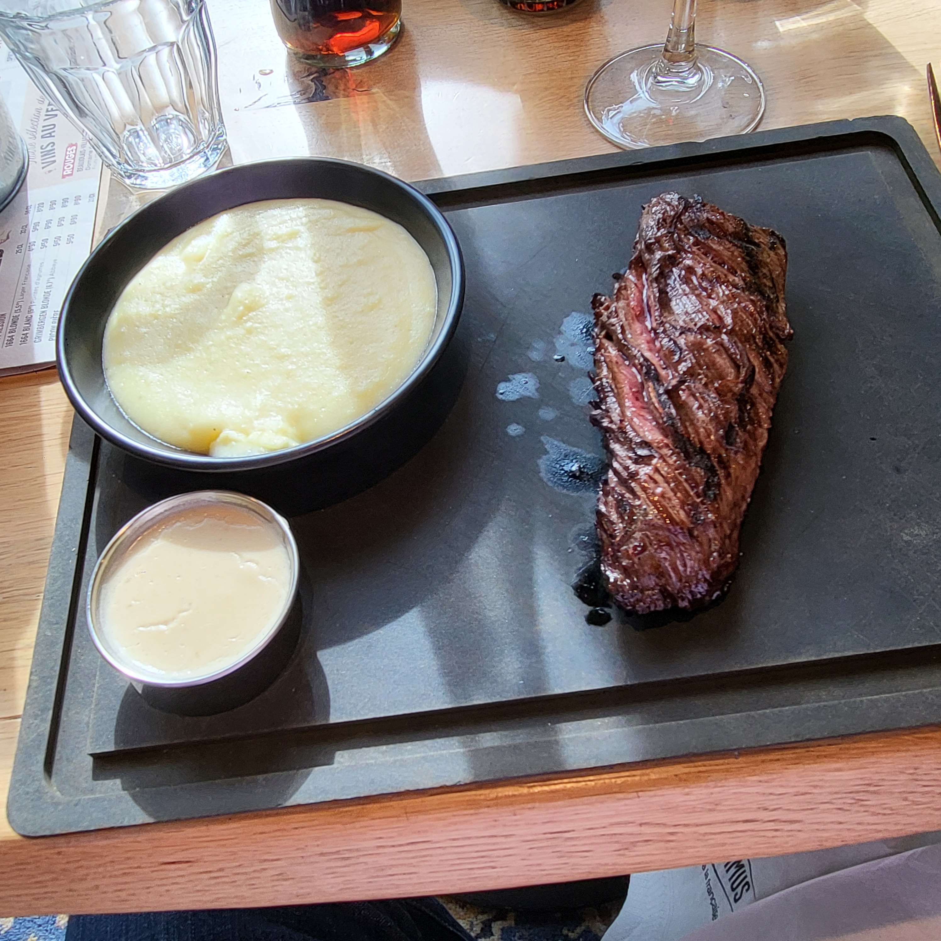 Nous avons commandé une côte de bœuf à partager à 2 très très bien cuite et c'était perfect.... Mais long très long en vue de la cuisson demandé 🫡😛