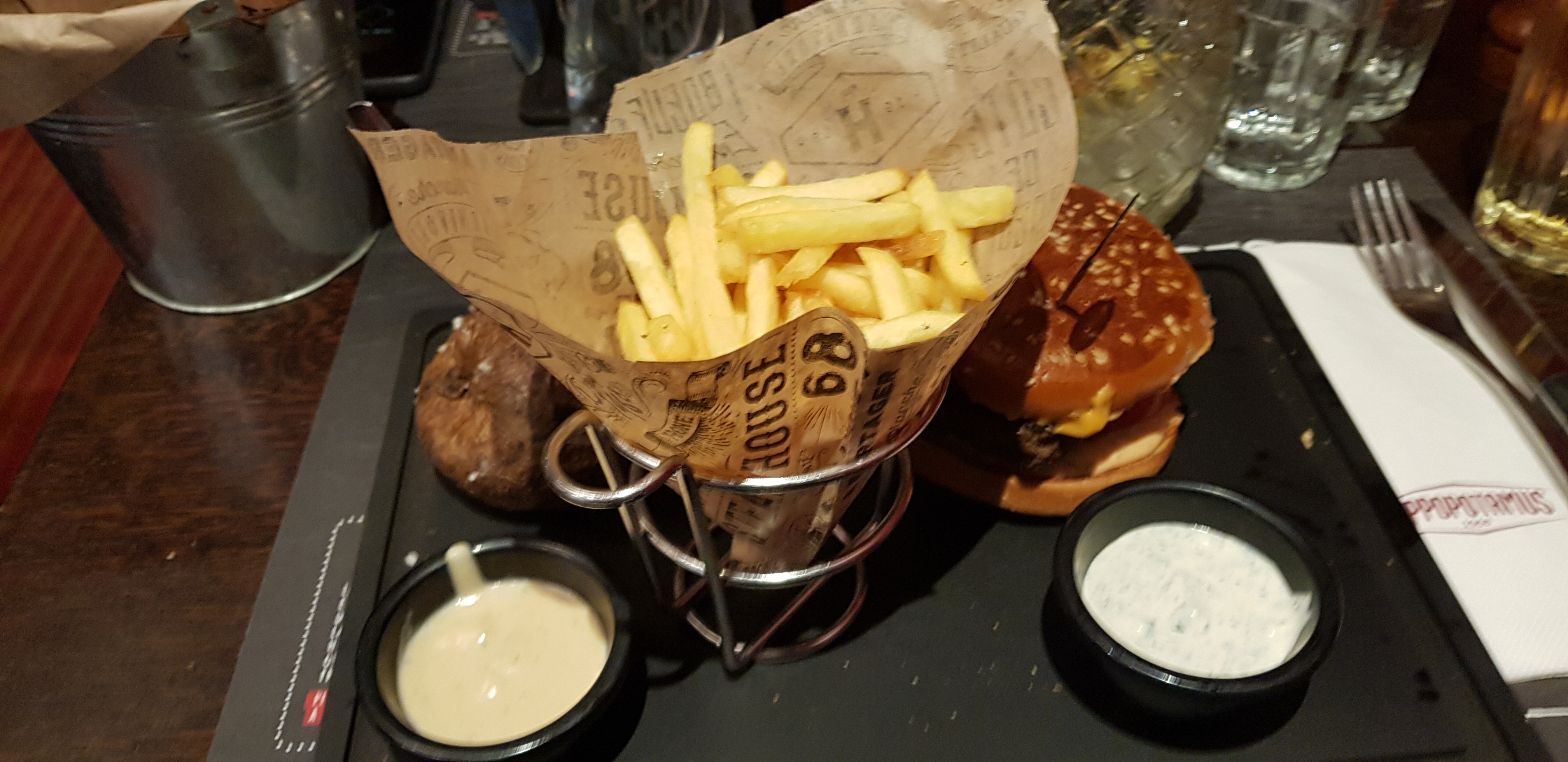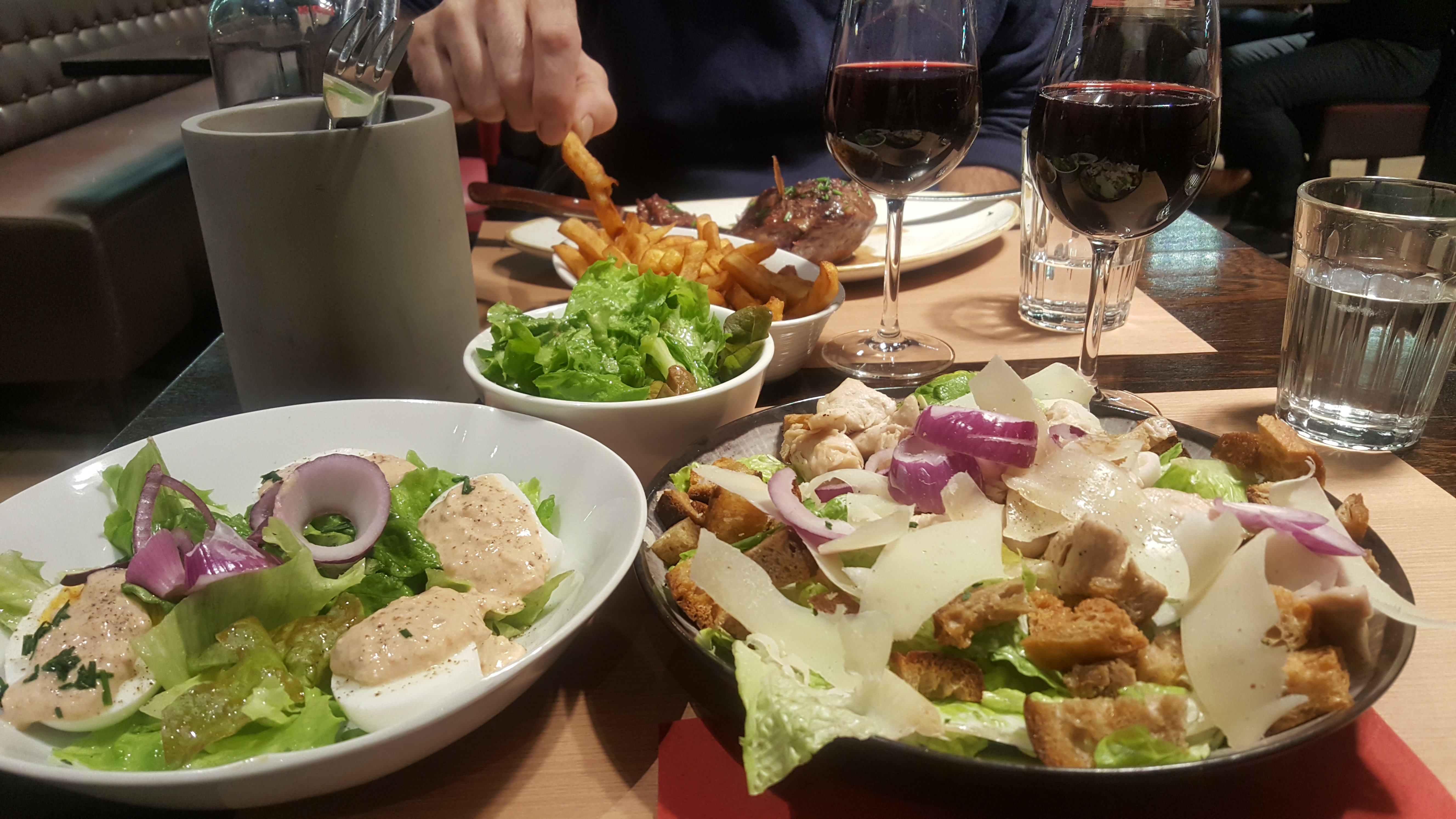 Le lieu est sympa bien que bruyant, mais c’est normal pour un samedi dans un grand espace ouvert. Ce qui ne me plaît pas c’est l’absence de légumes en entrée : certes je suis venue manger de la viande, mais pas que, quand même ! Alors si je ne veux pas prendre une salade-plat à 15,90€, je peux toujours prendre la garniture seule, une ridicule salade composée (de 3 feuilles), pour la modique somme de 5€. Je choisis donc de regarder mes compagnons de table manger leur entrée en attendant mon plat (avec des frites + une salade comme garniture sans supplément de prix). Autant dire que ce sera ma dernière expérience à l’hippopotamus : dans un monde où les choix pullulent, qui peut encore associer rigidité et service client ?