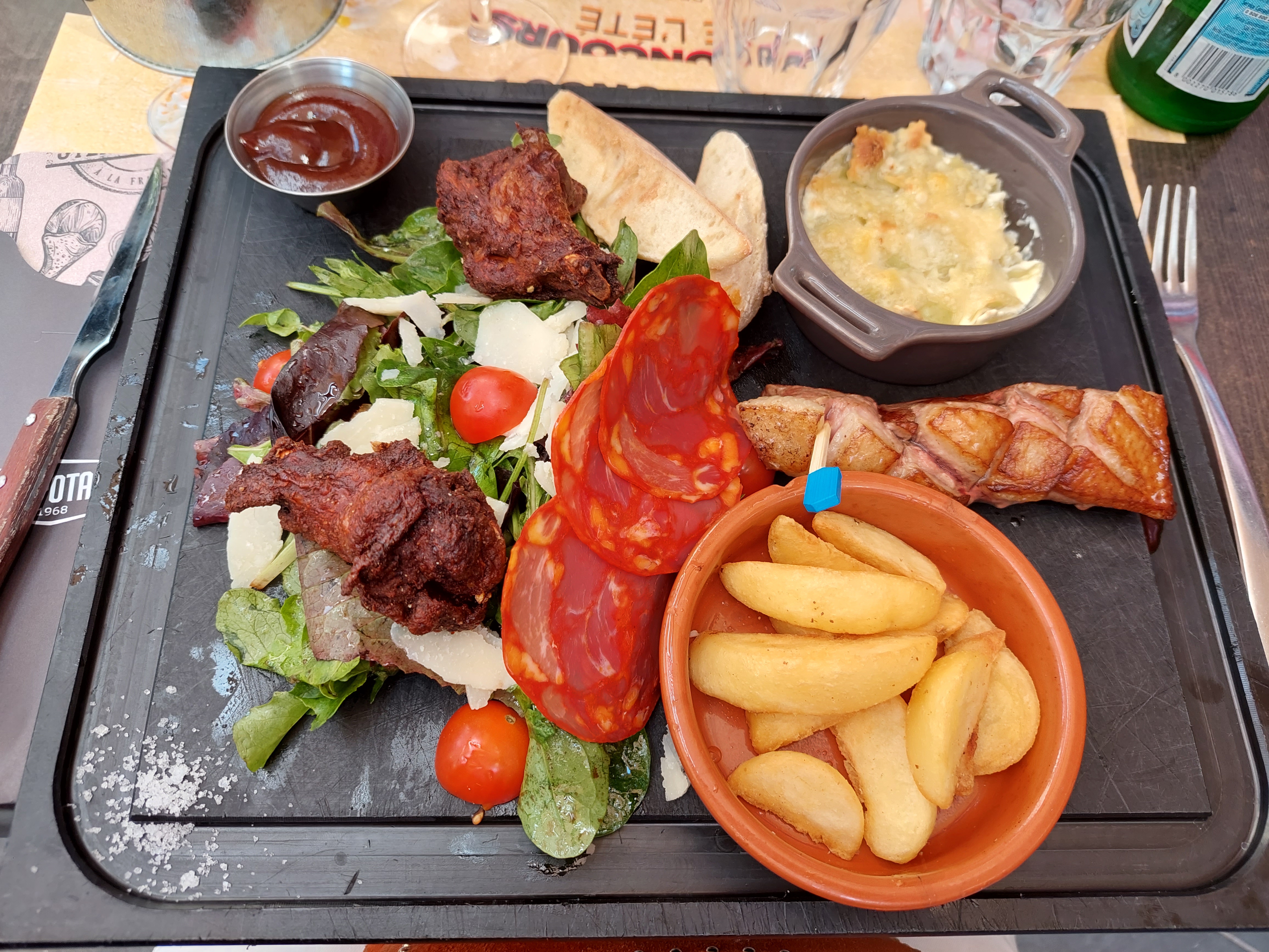 Un repas vraiment bon, attendu un peu car beaucoup de monde, mais cela en valait vraiment la peine. Personnel très sympa
