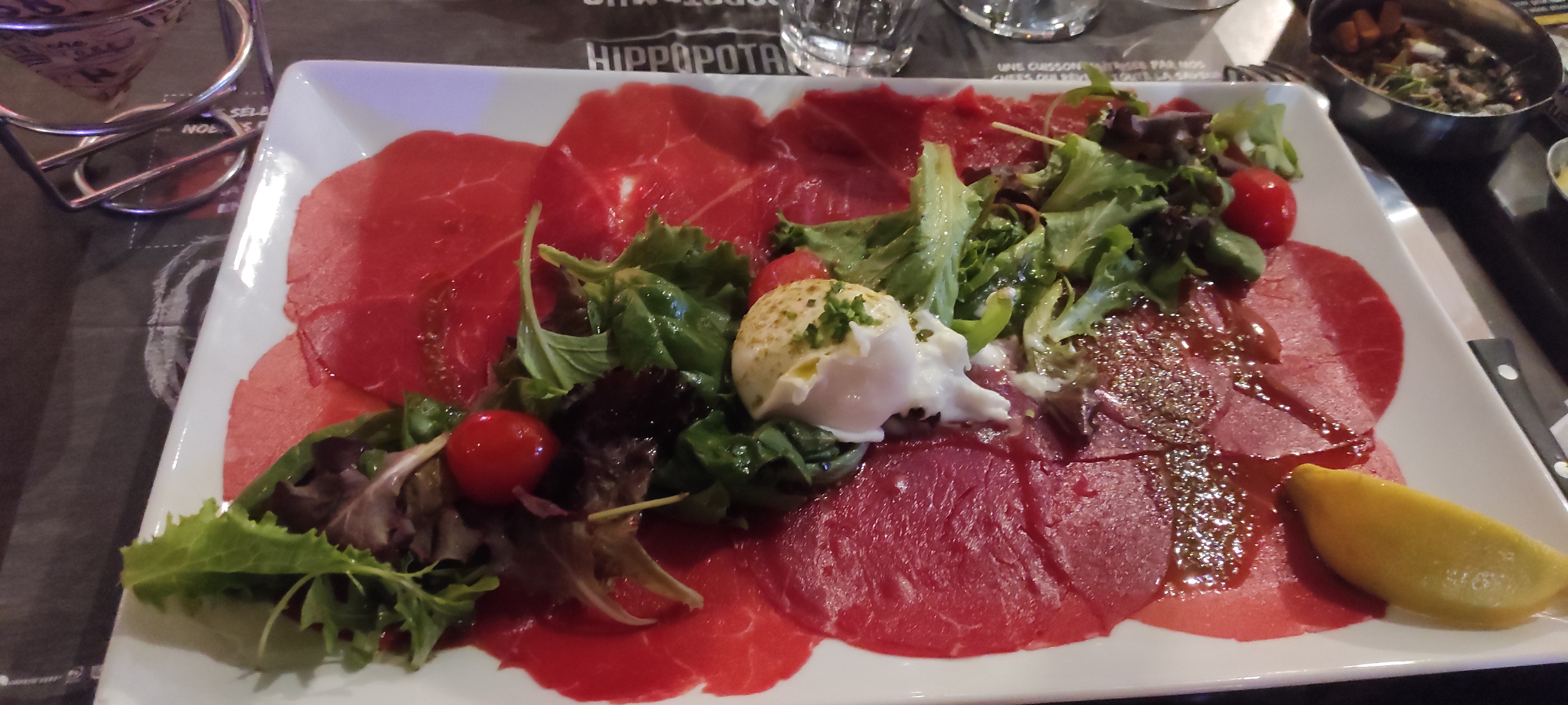 arrivé à l'entrée, jolies décorations de restaurant, Hippopotamus super sympa, cuisine raffinée choix de menu et carte 👍👍