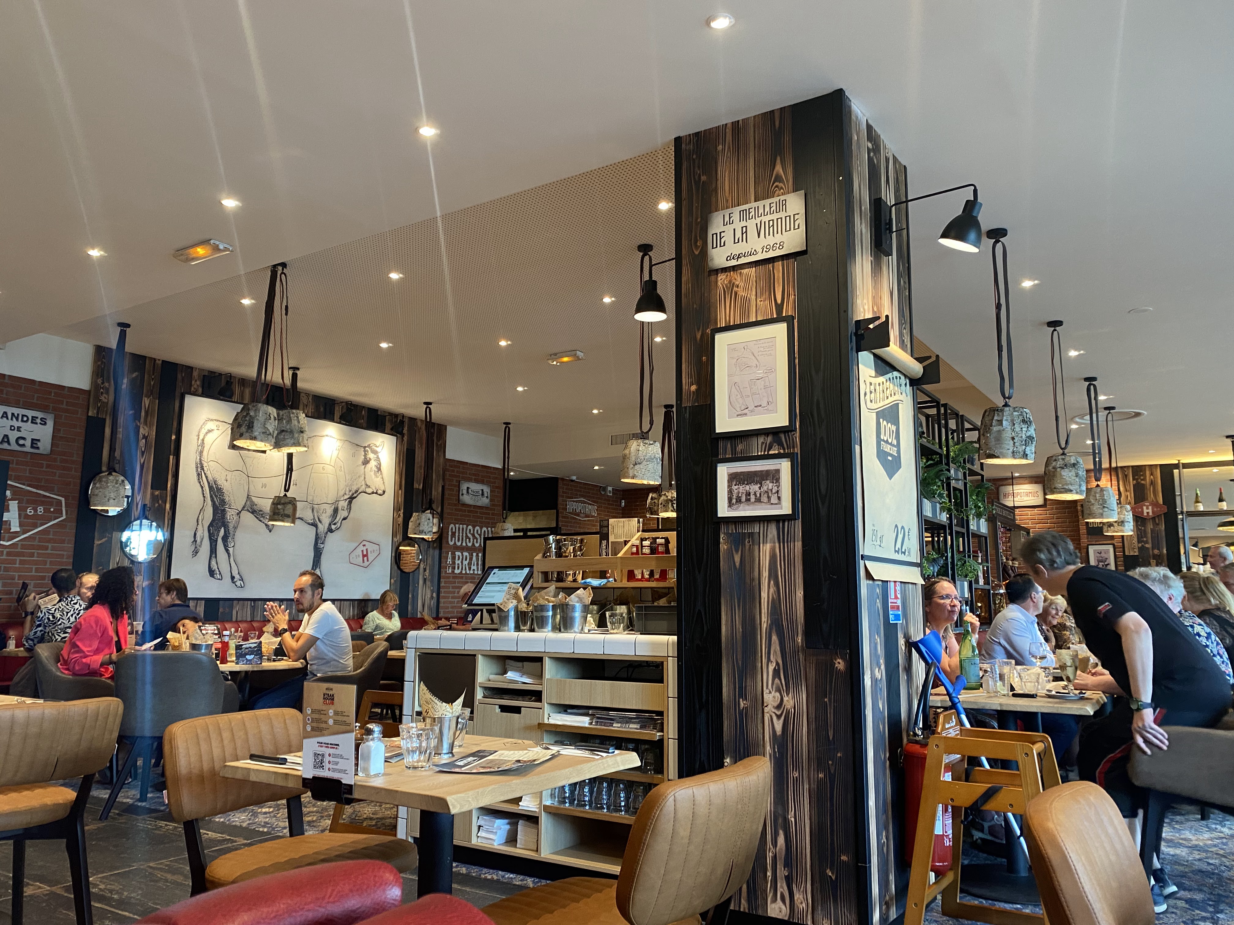 Beau concept de chaîne de restaurant basé sur la viande même si vous avez des poissons et quelques plats végétariens. Service agréable, à l’écoute du client essayant de répondre à nos demandes. Les plats sont bons mais le visuel et la présentation restent à revoir. Les prix des desserts sont trop élevés (env 10€ pour un café gourmand c’est énorme pour une chaîne de restaurant)