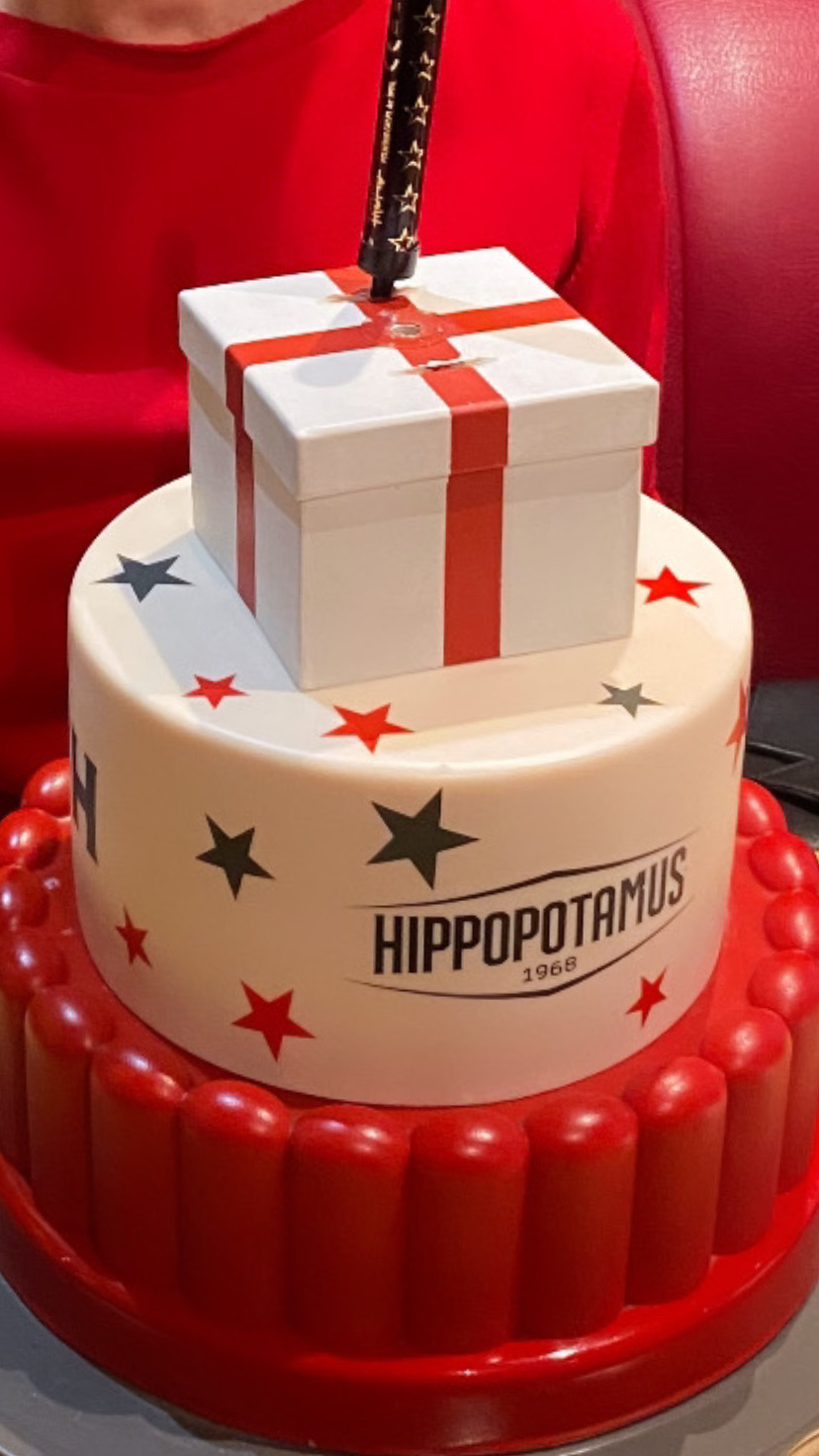 Soirée parfaite à l’Hippopotamus du Centre Italie 2. Service pro et réactif par la douce Célia !👏🏼 Nous avons tous bien dîné. La cerise sur le gâteau d’anniversaire a justement été celui (factice, en photo) apporté et en chantant par une bonne demi-douzaine de serveurs et cuisiniers à mon neveu (20 ans) ému et plus que surpris par l’attention ! Je recommande donc cet établissement.