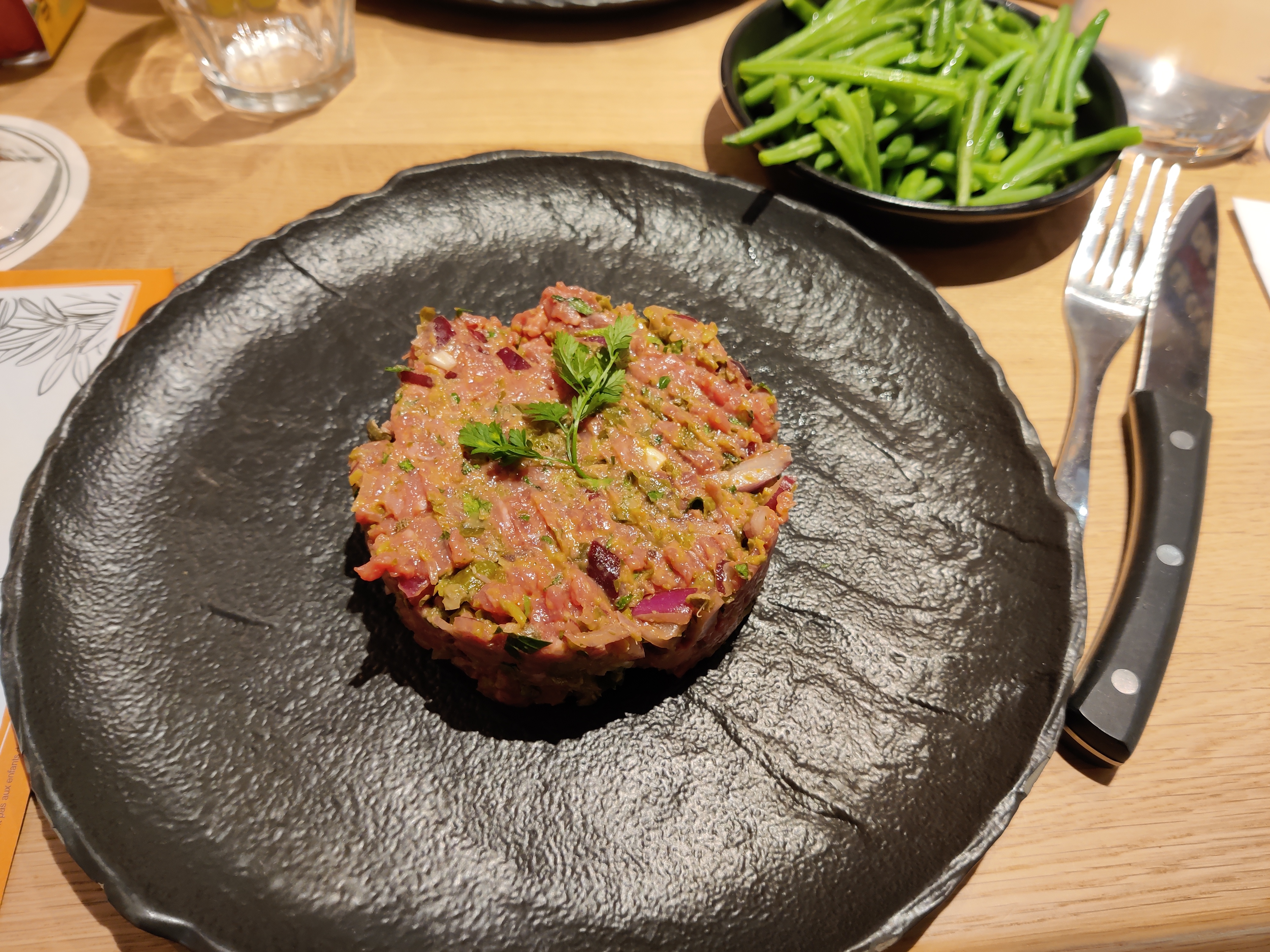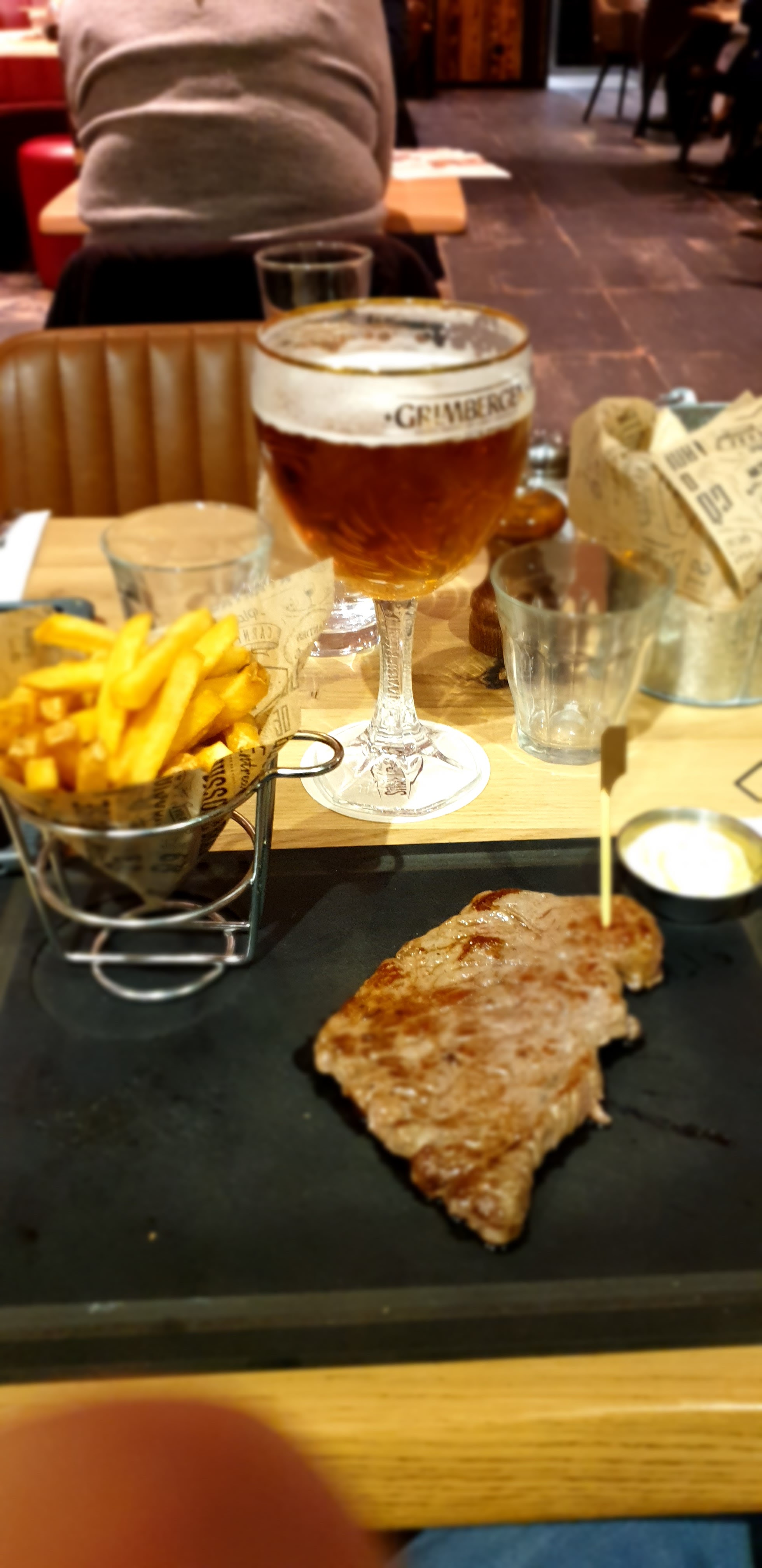 Très bon accueil, le personnel très agréable malgré notre arrivée tardive (22h30). La côte de Bœuf fut un vrai régal, bien présentée sur une planche suspendue à la table qui n'encombre pas cette dernière et la pièce de viande très tendre. Bravo aux 2 serveurs qui ont pris soin de nous et cela mérite d'être souligné. Bonne continuation
