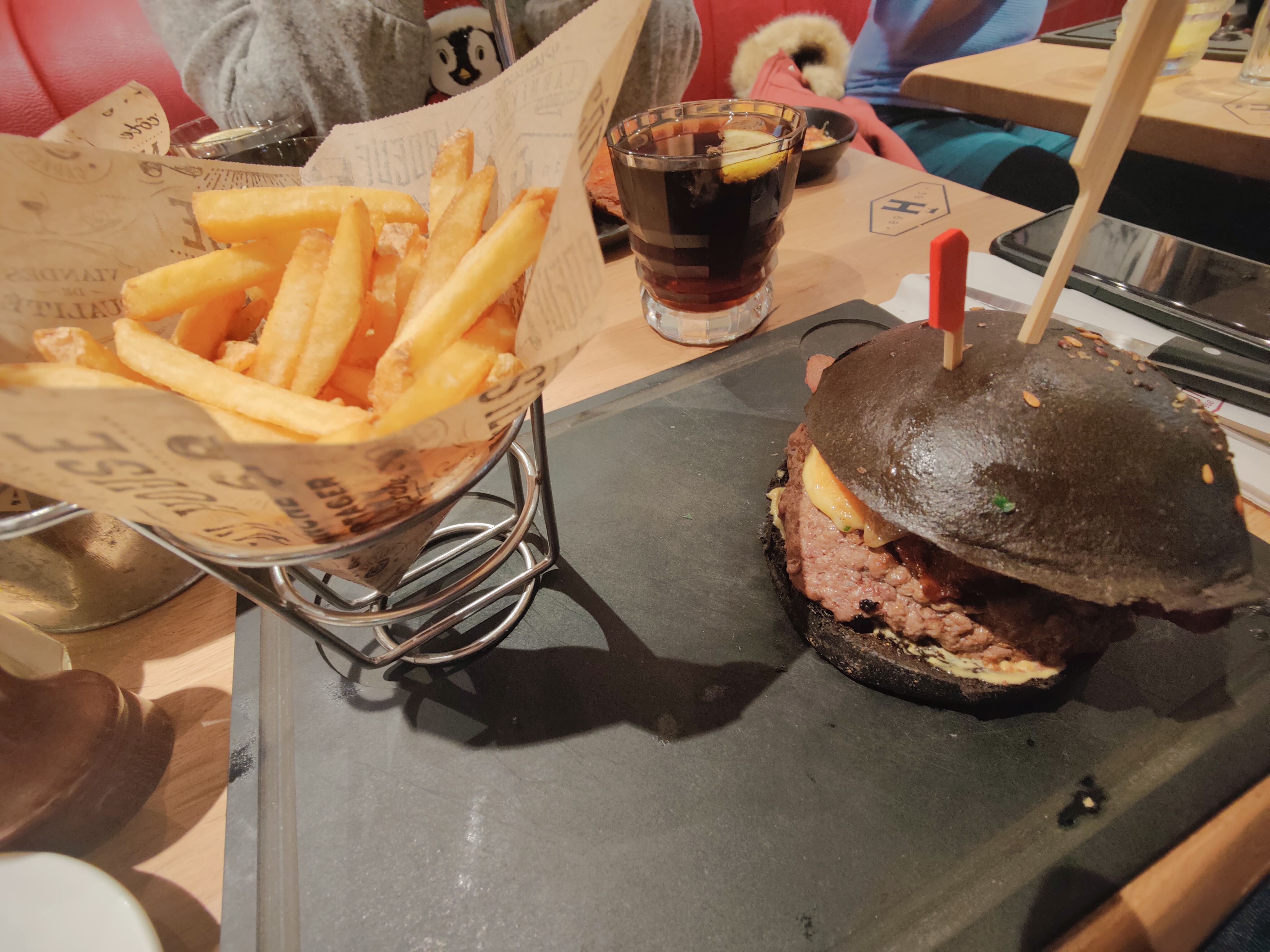 J'y suis allé comme cela avait été recommandé par un personnel adorable et par l'hôtel où je séjournais. Mes attentes n'étaient pas très grandes car c'était une chaîne qui était présente autour de Paris dès mes premières connaissances. Le service était bon et il y avait un code QR à scanner pour le menu anglais, ce qui était super. Nous avions commandé une petite entrée, un steak et leur steak burger. L'atmosphère m'a rappelé un TGI plus détendu sans le bruit, ce qui était super pour M. Le steak était bon mais pas génial, la coupe était un peu plus petite mais le goût général était bon. L'entrée et le burger en revanche étaient tout simplement incroyables. Le hamburger que j'avais commandé était avec du bacon, donc je l'ai fait retirer, mais les saveurs étaient tout simplement incroyables. Servi avec un petit pain noir croustillant et la viande a volé la vedette avec le fromage. J'y retournerais tout simplement pour ce burger la prochaine fois que je serai à Paris.