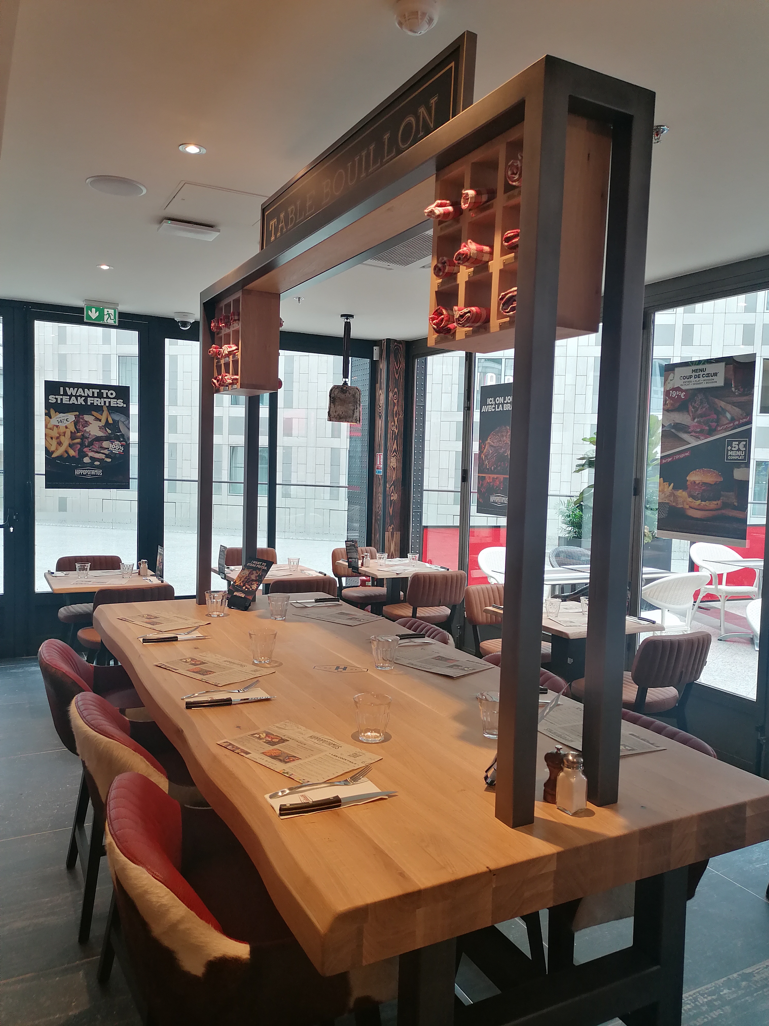 Hier soir, j'ai rejoint un ami qui a pu s'installer en m'attendant (alors que le restaurant était plein pour le début de soirée). Nous avons reçu un accueil et un service des plus chaleureux et dynamique de la part de l'ensemble de l'équipe (tant en salle qu'au bar) c'était juste tellement agréable ! Nous avons opté pour le menu entrée plat boisson, et nous avons été très agréablement surpris par l'excellente qualité des viandes et de leurs cuissons ! J'ai pour habitude d'être satisfaite de cette enseigne ; mais là, l'ensemble de nôtre expérience sortait vraiment du lot et nous tenions à féliciter tout le personnel pour ce qu'il nous a fait vivre ! Il est certain que nous reviendrons, et je recommande sans hésiter à quiconque souhaite se restaurer avec un rapport qualité prix ambiance des plus agréables ! Bravo et merci !