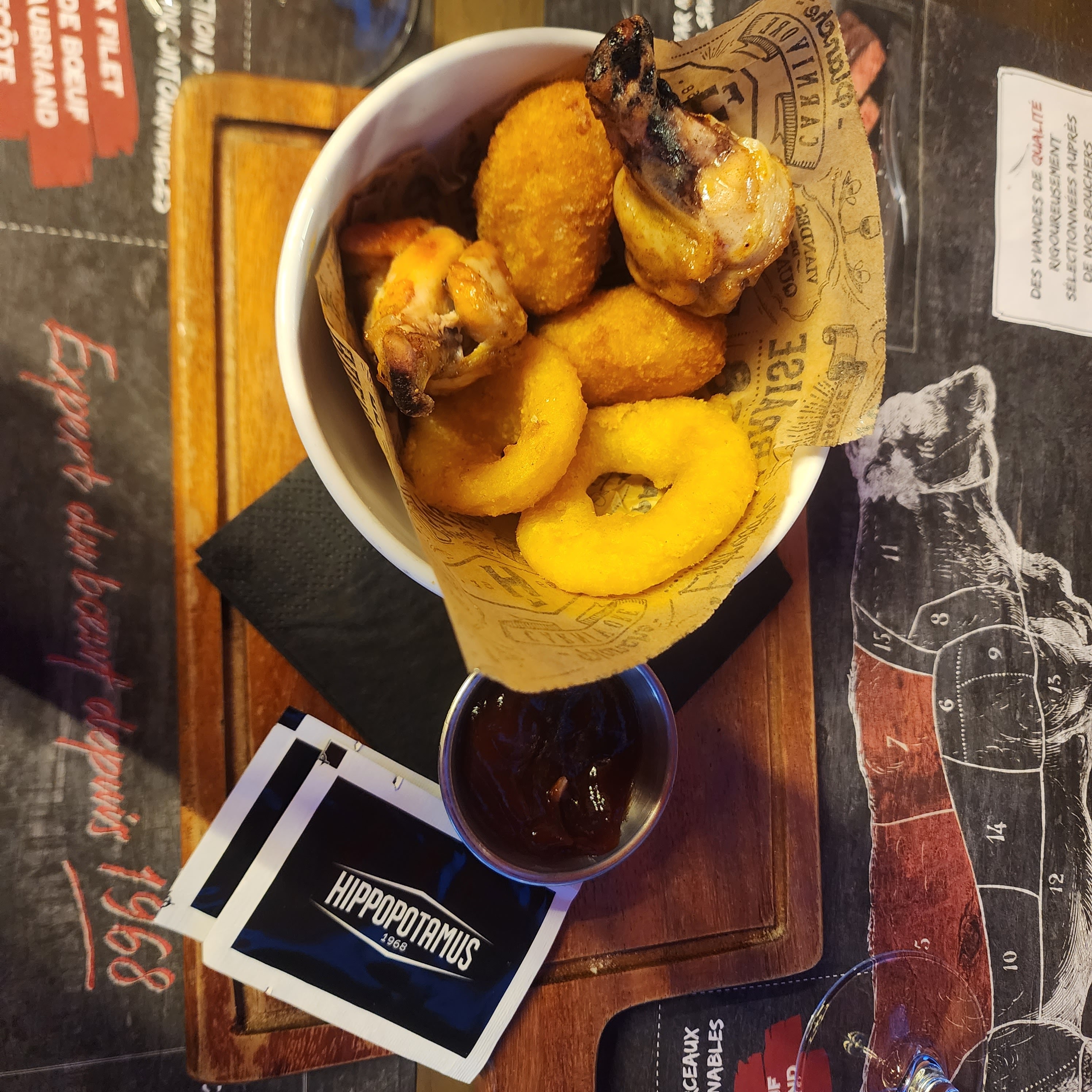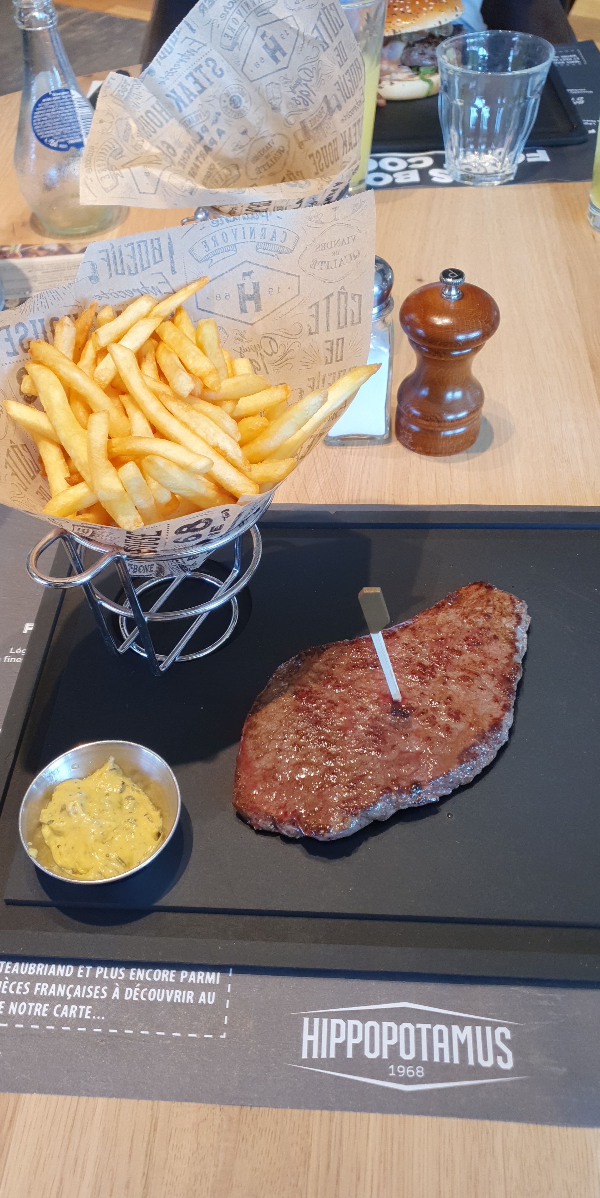 👉Découverte du nouveau restaurant de chaine Hippopotamus de Compiègne hier soir ; Lieu sympa, avec une belle déco, très propre et belle terrasse. Malgré le petit « hic » ⚙️ dans le service d’hier soir et le monde qui s’était donné rdv à la même heure (?), le personnel (et la sympathique patronne ?👌) sont venus plusieurs fois s’excuser pour l’attente (en nous offrant même une boisson !🍷🥃🍹🍺). Bonne surprise à l’arrivée des plats : la viande est extra🍗, la cuisson parfaite et les hamburger 🍔(selon nos ados) une tuerie !... (les frites mériterai d’être un peu + cuite). Accompagnements légumes et sauces à volonté, tout comme la mousse au chocolat. Finalement 105€ pour 4 pers, apéritif, plat, dessert et pichet de rosé : très honnête ! Nous sommes très satisfaits et reviendrons sans soucis ! 👍👏👌