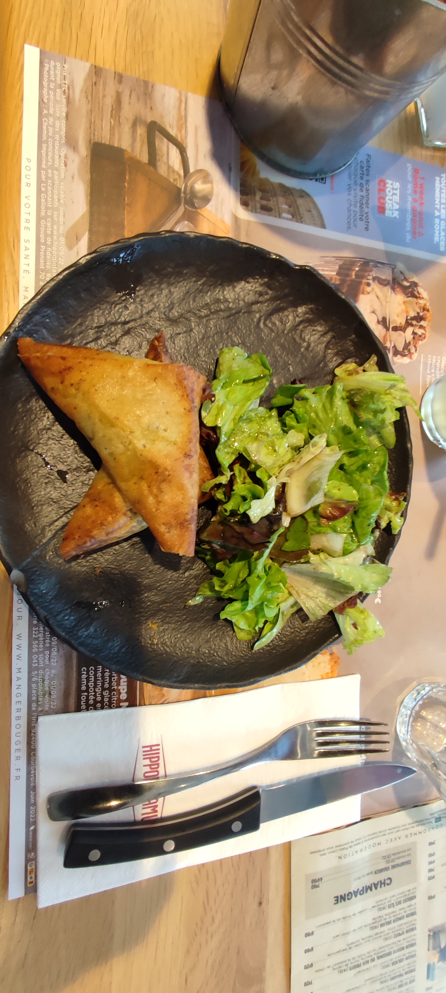 Déçu par le chèvre chaud servi façon samoussa bouillant et la tranche de chèvre trop épaisse mes haricots vert sont arrivés en décalage avec ma viande qui est arrivée avec des frites dont je voulais pas la mousse au chocolat à volonté est acceptable mais pas extraordinaire en revanche le trio de viande est de très bonne qualité