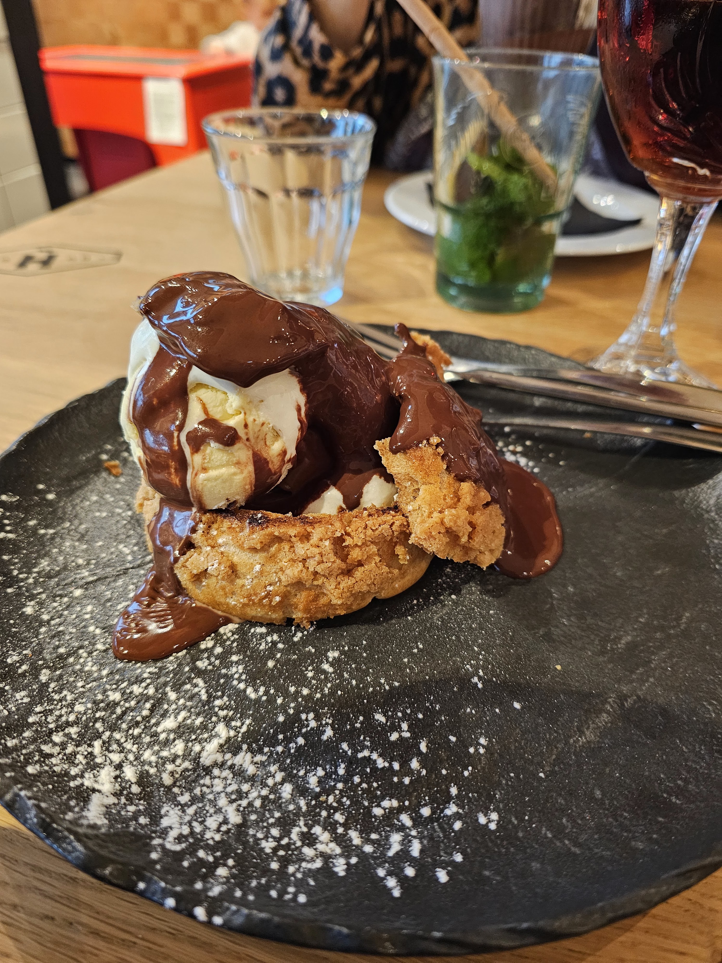 Agréable moment, la pièce de boeuf marinée très tendre, mon mari a découvert le choux profiterole 👍 excellent. On reviendra merci pour votre accueil et de la bienveillance du jeune personnel👏👏👏