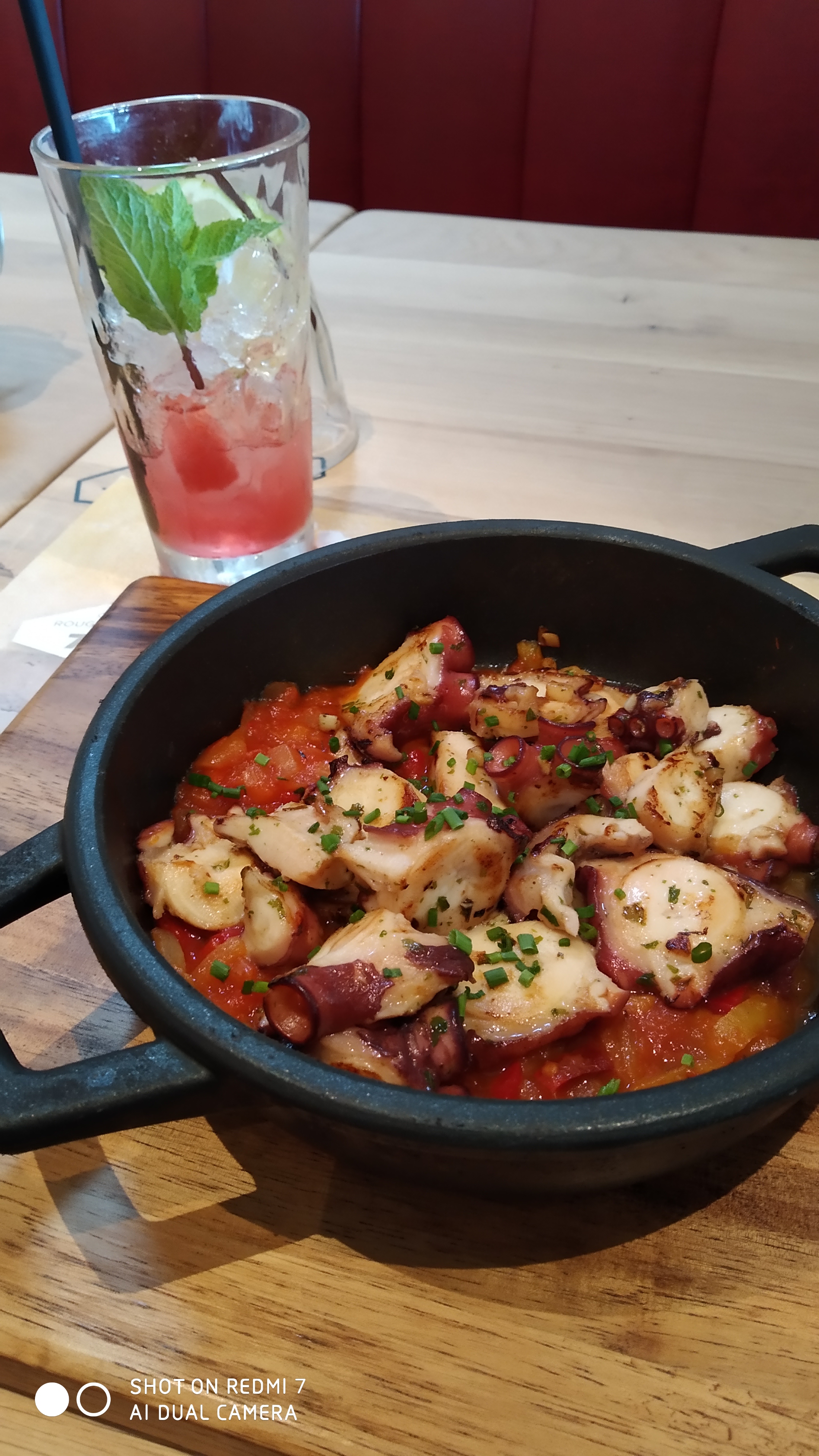 Un bon accueil de la part de la patronne et des employé(e)s ( serveuses, serveurs, barmanne, runner). Le cocktail cosmo is dead est tres frais et goûteux ainsi que le verre de Monbazillac. Un repas copieux et délicieux avec son poulpe à la basquaise en entrée, suivi de la salade méditerranéenne et fini par la brioche perdu. Un bon suivi de la table de la part de l' entreprise. Un service rapide et efficace. Il nous demande si nous voulons du pain, sel/poivre pour éviter le gaspillage qui est primordial à leurs actuel. Suivi du Protocole Covid ainsi que des distanciations. Lieu chaleureux, agréable et propre. Après plusieurs visites toujours aussi agréable d'y revenir.