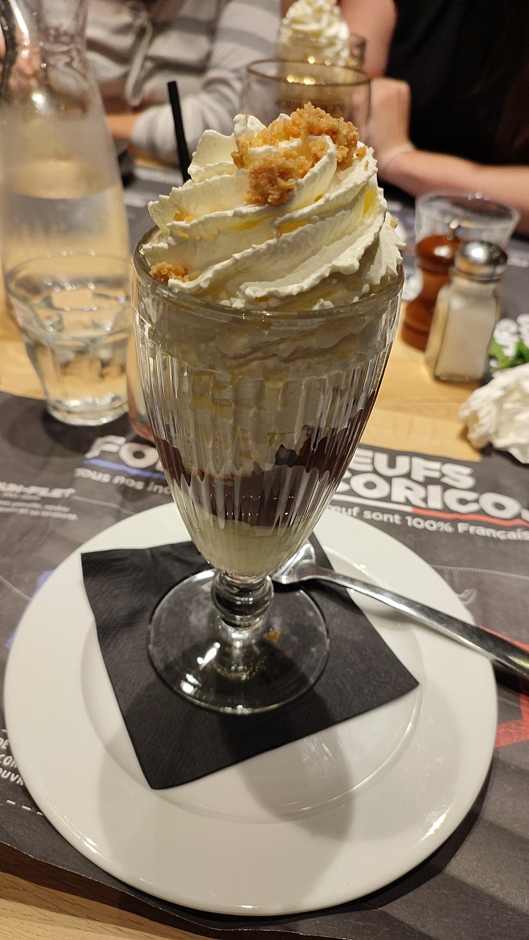 Venu manger hier , L'accueil fait pas les serveurs /serveuses vraiment bien faite ils ont su tres bien gérer leurs service Nous avons pris 2 plats bruger chorizo et burger classique . Le repas etait très copieux. Les desserts etaient tres bon., Un liegeois pour ma part et une coupe a la fraise qui était egalement excellente. Je recommande et reviendrai