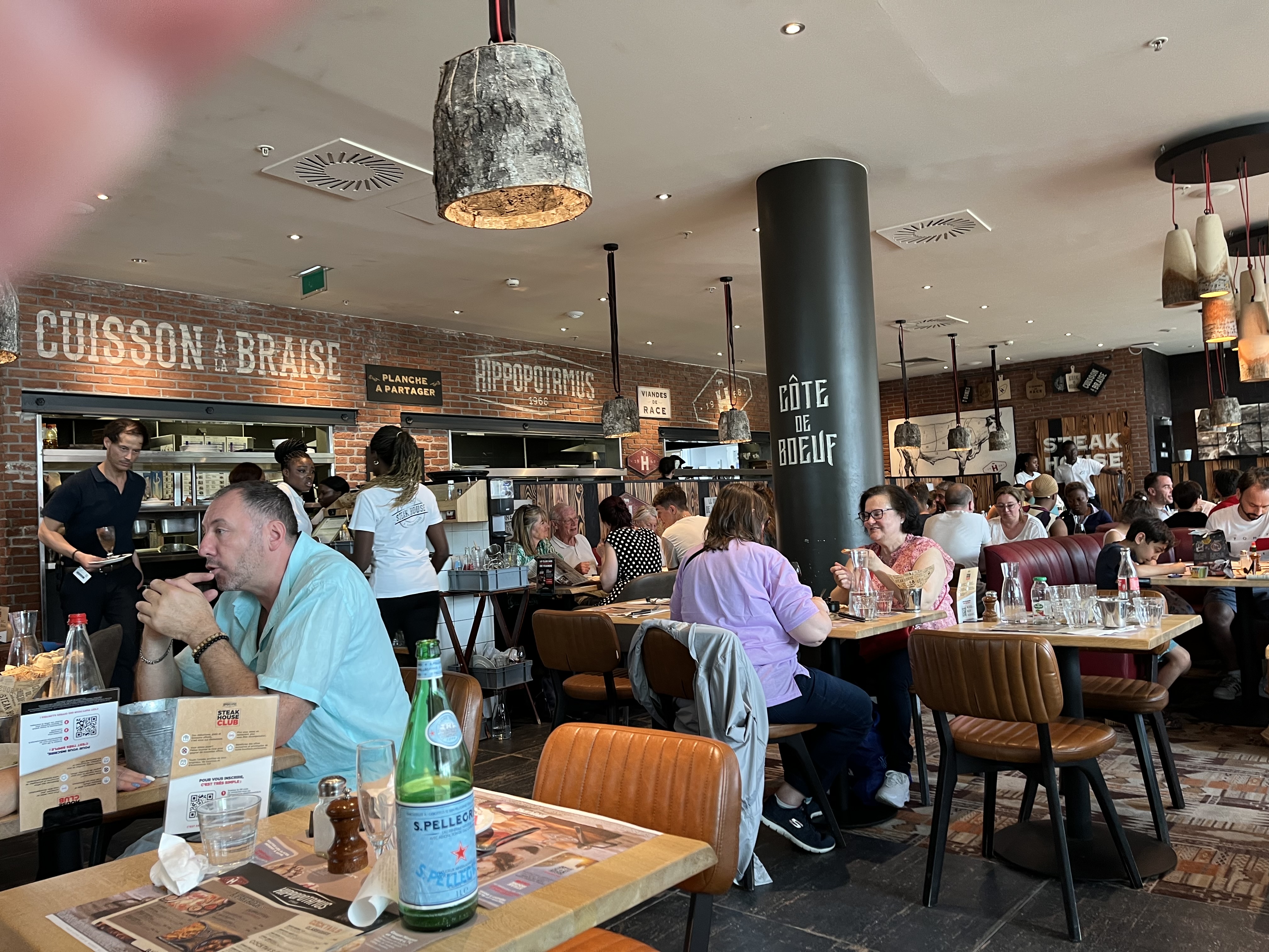 Merci à Pamela pour avoir rendu notre soirée agréable avec un service aux petits soins, accompagné de sourires et notre commande respectée de bout en bout. Pour ma part j'ai pu manger un demi poulet avec ses pommes de terre au four. C'était bon, copieux et servi si chaud que je sais à présent ce que c'est de goûter à la chaleur des enfers 😂 je vous conseille également leur moutarde si vous n'avez pas peur de réapprendre à respirer, tellement elle debouche le nez ! pour mon compagnon, il a pris la brochette de boeuf XL. Bon qu'on se le dise, elle n'est pas si XL que ça vu la quantité de viande qu'il y a dessus mais il a apprécié tout de même. On a fini avec la soupe de fraises qui était bonne et gourmande. J'ai rarement été aussi satisfaite dans un Hippopotamus !