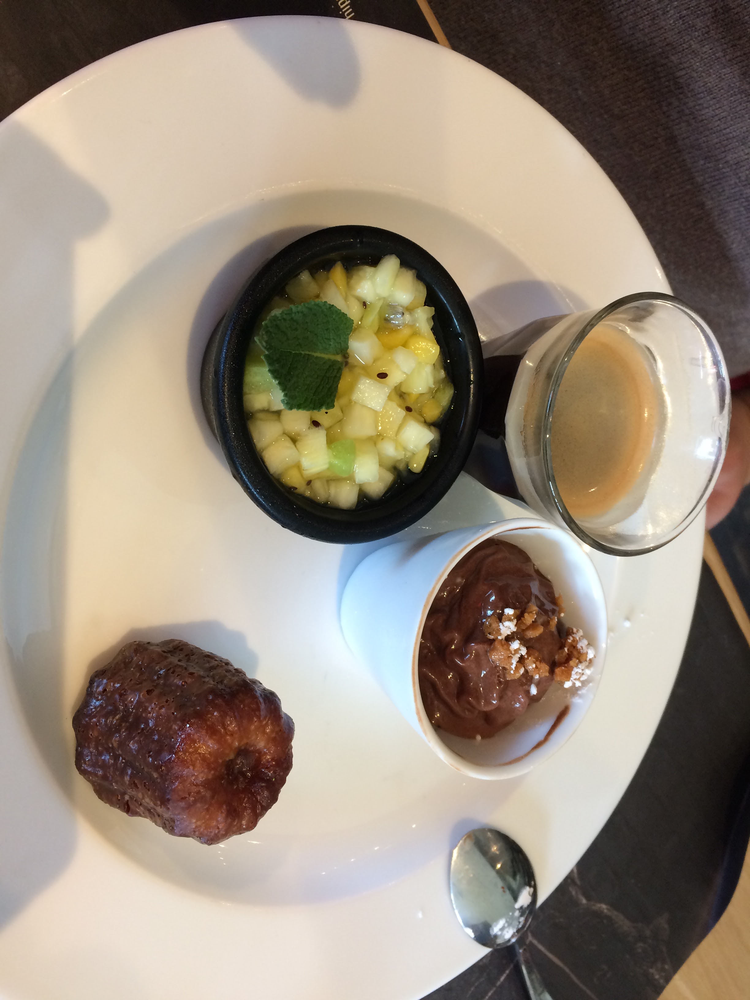 Bon accueil... un peu trop pressée de nous servir à mon goût. Plat plus ou moins bon (personnellement salade extrêmement salée et plat basique ) et pour finir dessert (dame blanche) ecoeurant beaucoup trop de coulis de chocolat et chantilly retombée. 🤔
