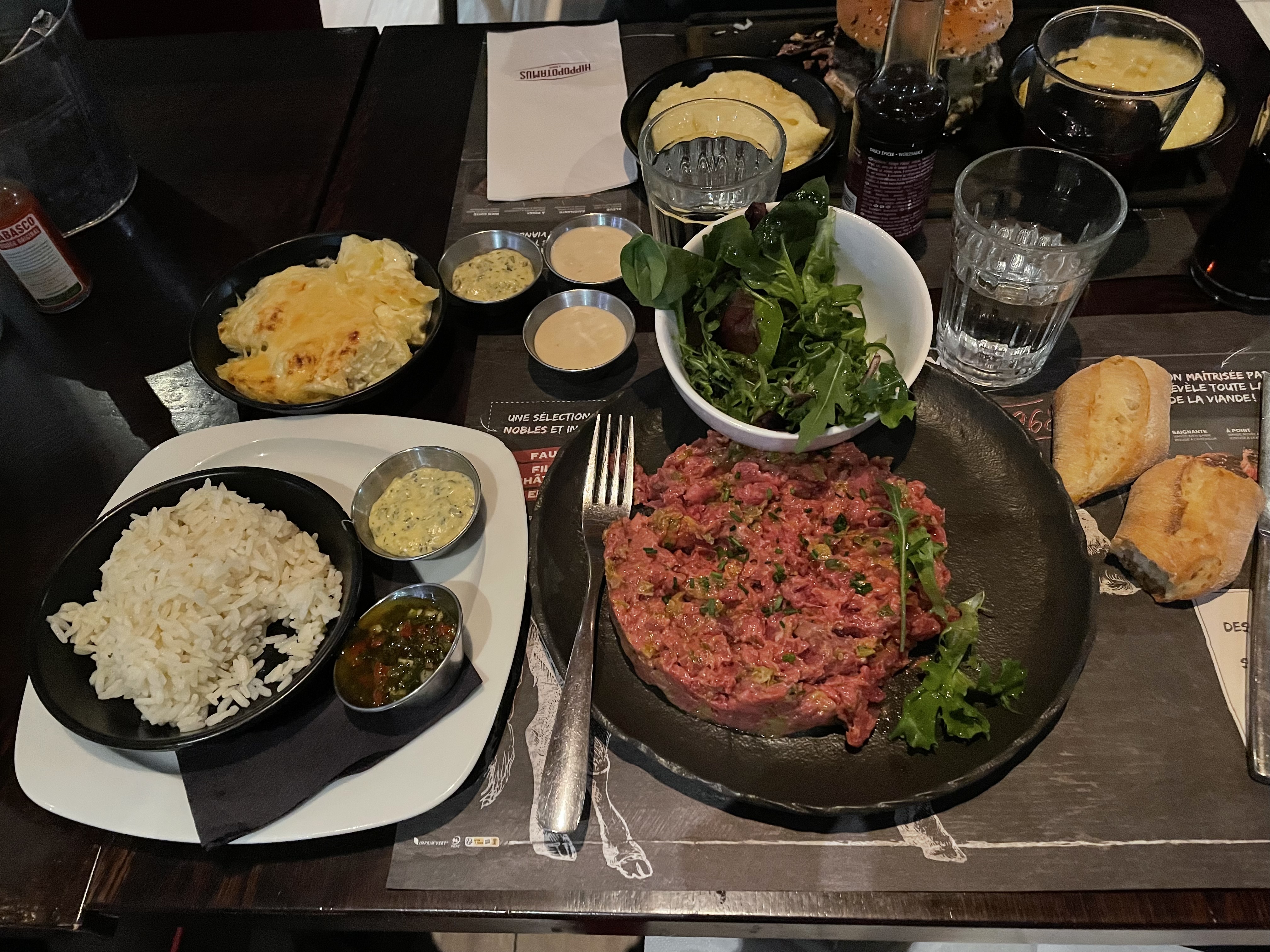 On et venu manger avec des collègues, l'ambiance était sympa, ainsi que le serveur ( un jeune assez marrant). Les plats étaient plutôt bon ,par compte la quantité et a revoir !! La viande et ridicule pour le prix pratiqués !! 26€ pour un tout petit bout de viande ( heureusement que les accompagnement sont a volonté..) (Je précise que les 6 personnes qui on pris des viandes différentes et on trouver ça plutôt petit par rapport au prix !)