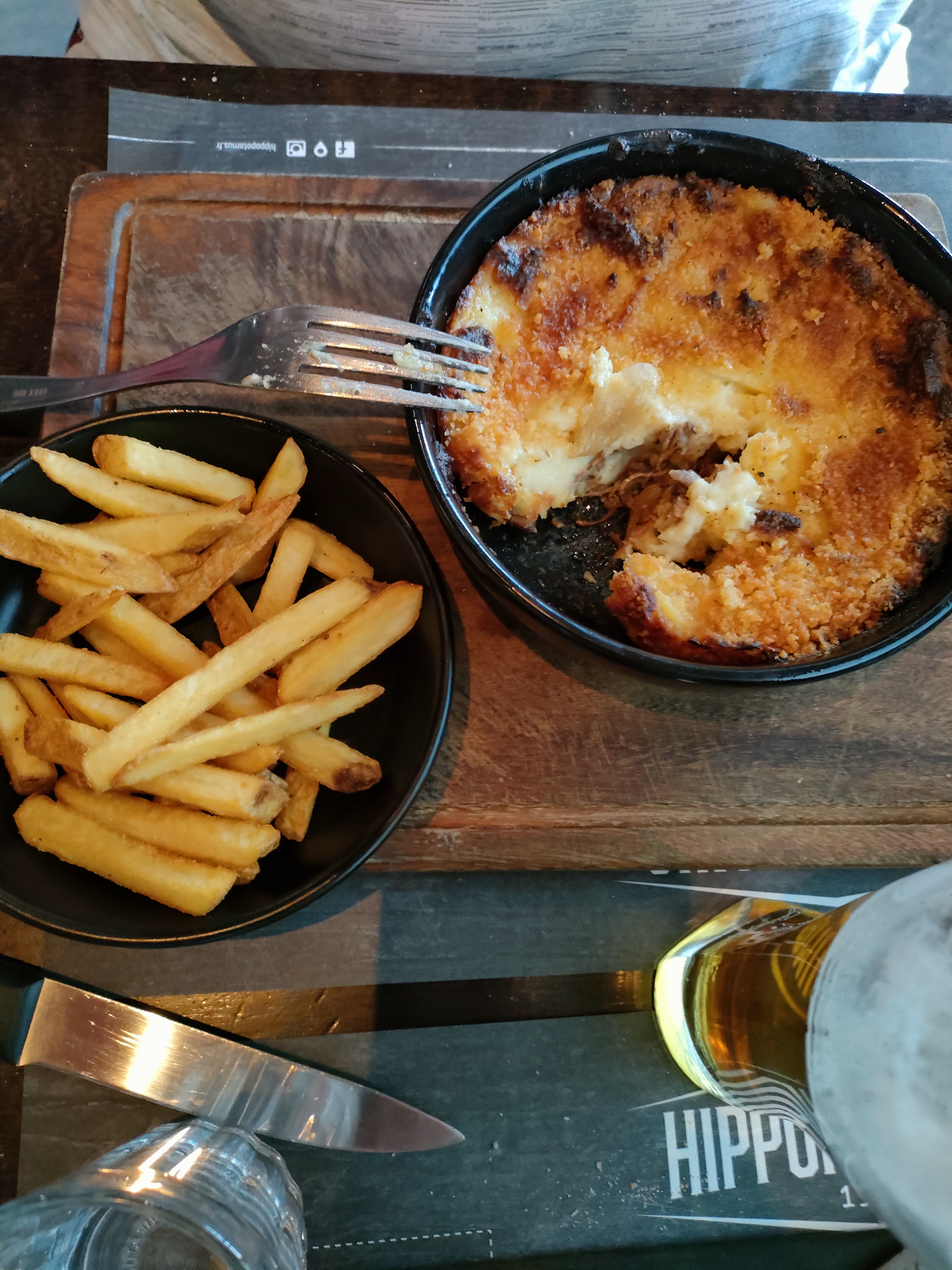 Bien servi, rapidement, bon accueil. Par contre la qualité et la quantité ne s’accordent pas du tout avec le prix. J’ai pris le haché original qui était en photo sur la carte, et qui était beaucoup moins rempli une fois servi que sur la photo. La quantité de frite est vraiment pas terrible et frite trop cuite...