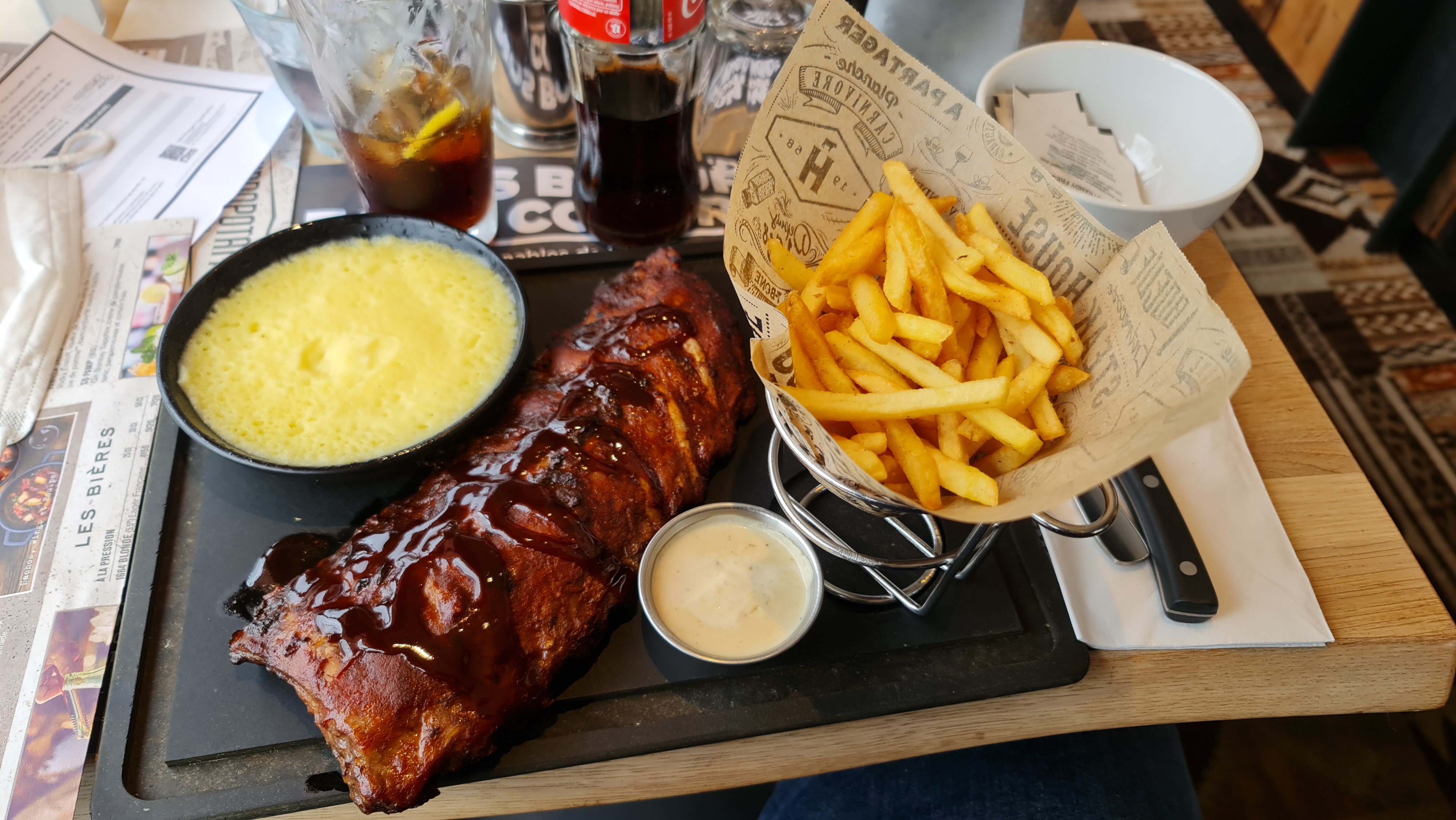 Satisfait !! Restaurant calme, personnel rapide et discret. J'ai choisi de prendre des Ribbs BBQ et je ne suis pas déçu. La mousse au chocolat est excellente. Un léger bémol pour la bavette qu'a choisi ma compagne. La cuisson était parfaite mais la pièce un peu petite. Très bon restaurant dans l'ensemble 👌🏾