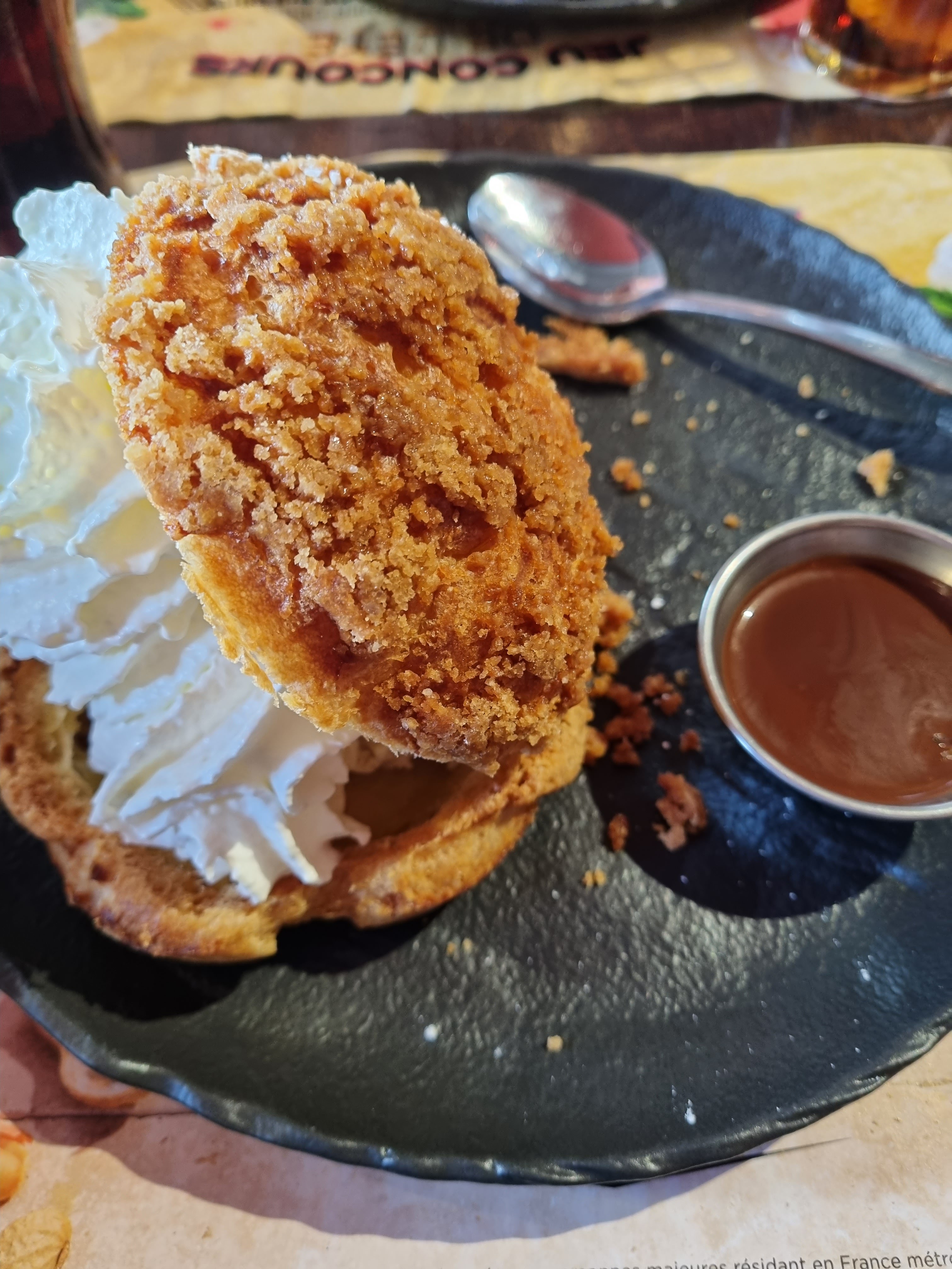Lieu sympa,équipe pro et souriant, dommage déçu par leur profiteroles trop sec est dur ,la pâte à chou pas terrible, sinon le reste était bon