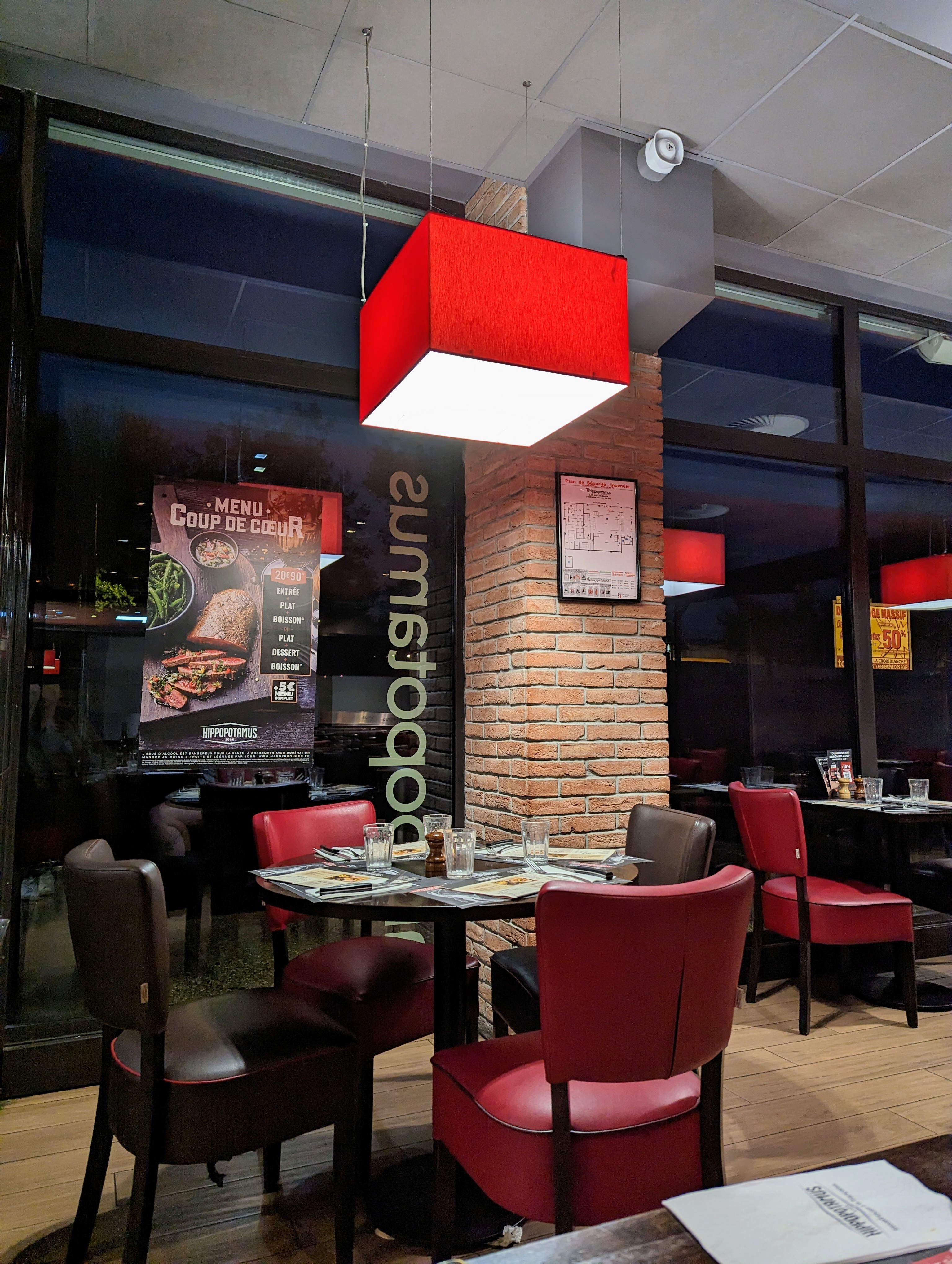 Calme et en toute sincérité des plats très qualitatifs pour un hippo. Le service était vraiment au top. On vous demande si tout va bien si tout c'est bien passé. Bref on notera une nette amélioration du niveau . En espérant que toute la chaîne est comme celui de Sainte Geneviève des bois. Merci l'équipe avec les enfants nous avons passé un beau samedi soir grâce à vous.