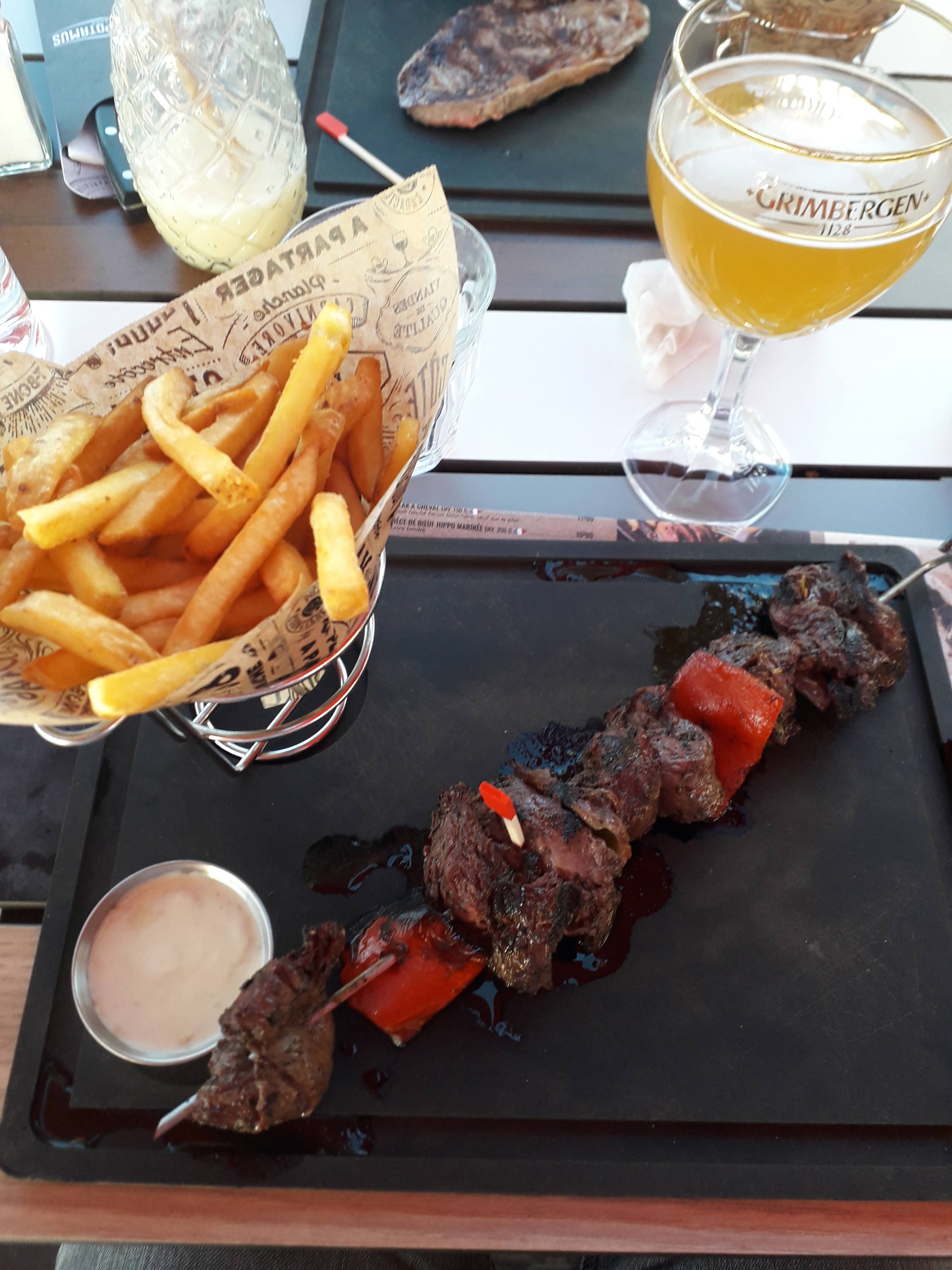 Une brochette de boeuf xl avec une marinade vraiment très bonne et un onglet très savoureux . Merci