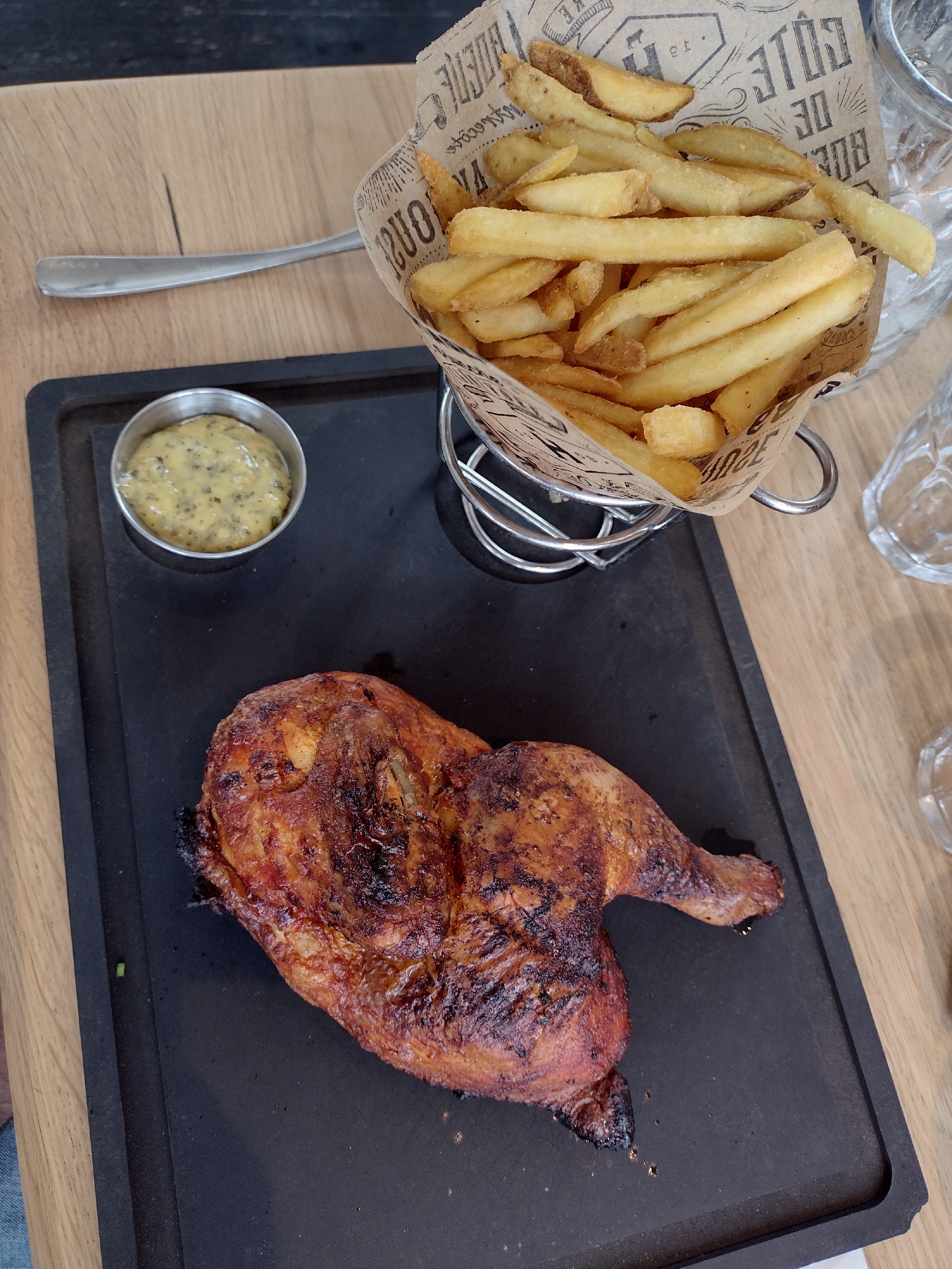 C'était très bien , des produits frais, fish and ship très bons.burgueur et mogettes de poulet très bons.les frites sont croustillantes et les sauces goutues.Lle menu : 1/2 poulet sauce champignon vraiment bon. On va y revenir car le service est très convivial