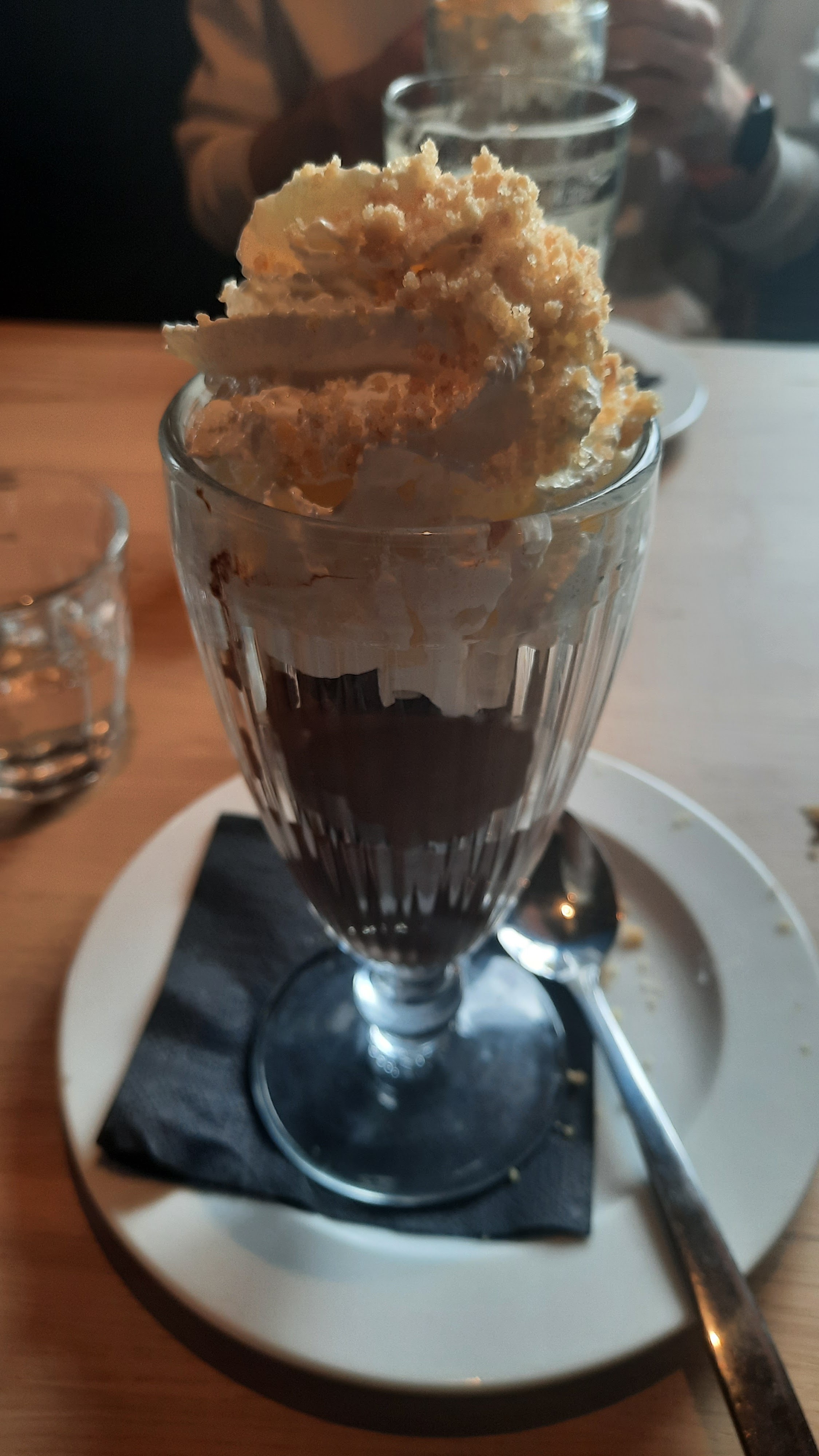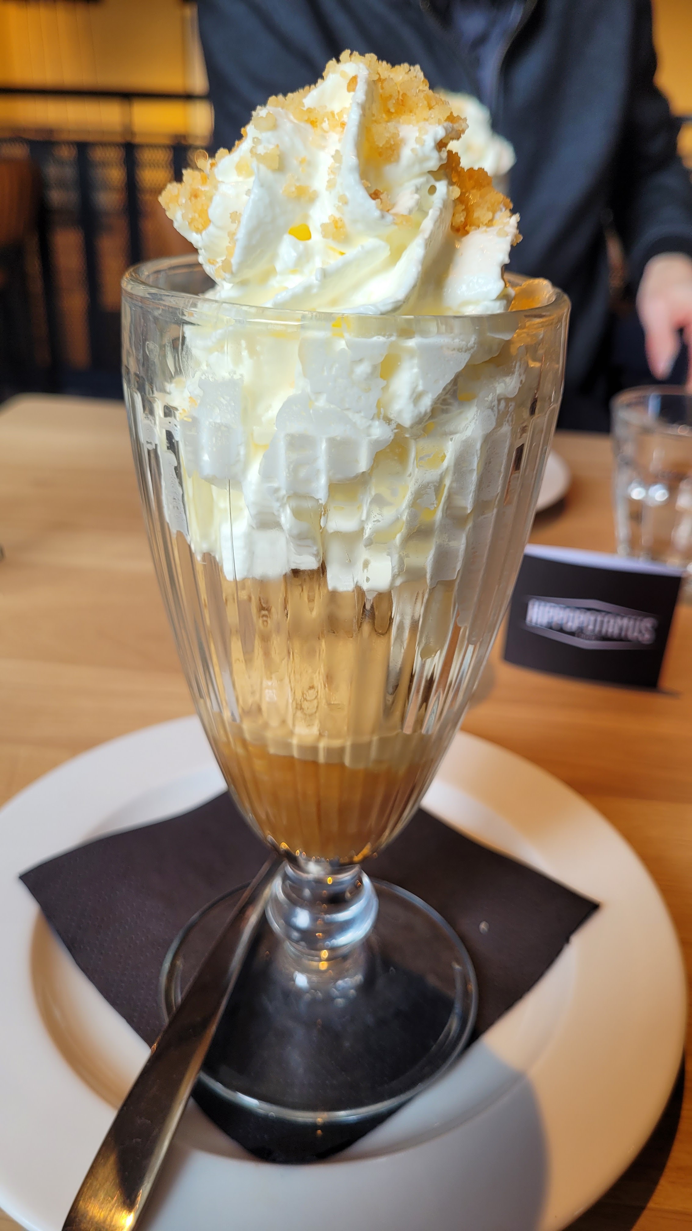 J'ai tenté un cocktail qui aurait mérité d'être mélangé mais on ne m'avait rien mis pour donc la fin était imbuvable quand je suis tombée sur le sitop... Service un peu lent pour les sauces nous avions terminé les frites... Dessert glacé : moitié de chantilly, très peu de glace et brownie. Le burger était très bon mais le reste est en Demi teinte malheureusement