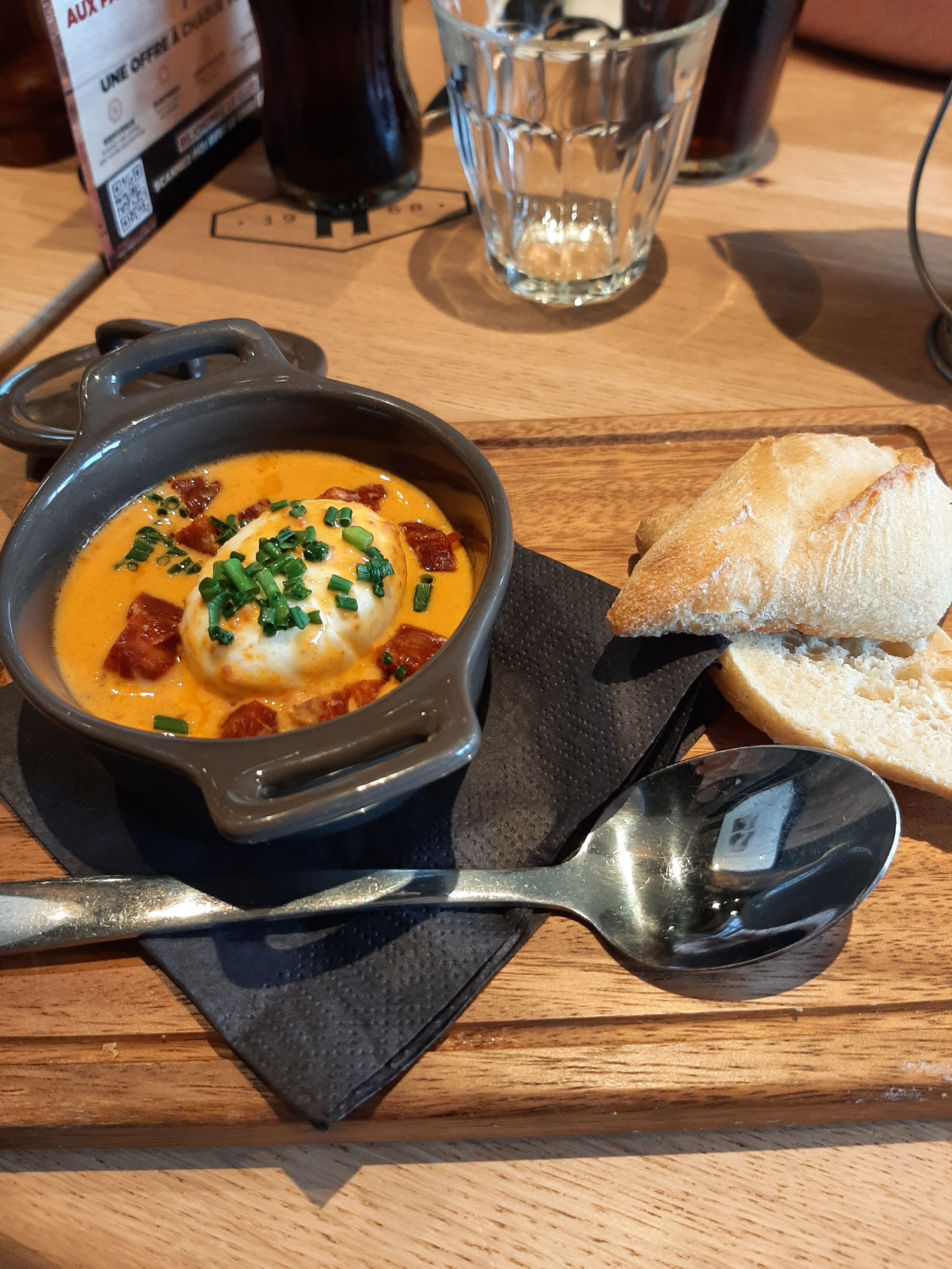 Je n'ai pas l'habitude de m'exprimer sur mes avis en terme de restauration, mais je vais faire une exception ! Ma moitié et moi avons profité d'un magnifique repas hier soir. Ma compagne a pris en entrée, un excellent œuf poché avec une délicieuse sauce chorizo Suivi d'un jambon braisé succulent et pour finir une mousse au chocolat maison. De mon côté, j'ai profité du haché original, une immense pièce de bœuf haché au goût incroyable ! Pour finir sur une brioche façon pain perdu. Pour être sincère, je m'attendais à des produits surgelés vu qu'il s'agit d'une chaîne de restaurants. Mais j'ai été détrompé par le goût et la qualité des produits, mais aussi par notre gentille serveuse Louane. Elle nous a expliqué que tous les produits étaient frais, d'origine française et fait maison ! En parlant de Louane, son service à été un sans-faute, elle était très prévenante et à notre écoute... Une personne d'une grande empathie et très gentille, encore une fois. Je ne saurai trop recommander ce restaurant, FONCEZ ! FONCEZ MANGER DANS CE RESTAURANT ! Vous ne le regretterez pas. Toutefois prévoyez le budget avant de vous y rendre. La qualité des produits et du services justifient amplement les prix un peu élevé... Mais par les temps actuels les prix ne sont pas forcément adaptés à tous les budgets. TL;DR : Nourriture excellente, un service impeccable, mais des prix un peu élevé. Si vous avez faim et le budget, vous passerez un excellent repas !