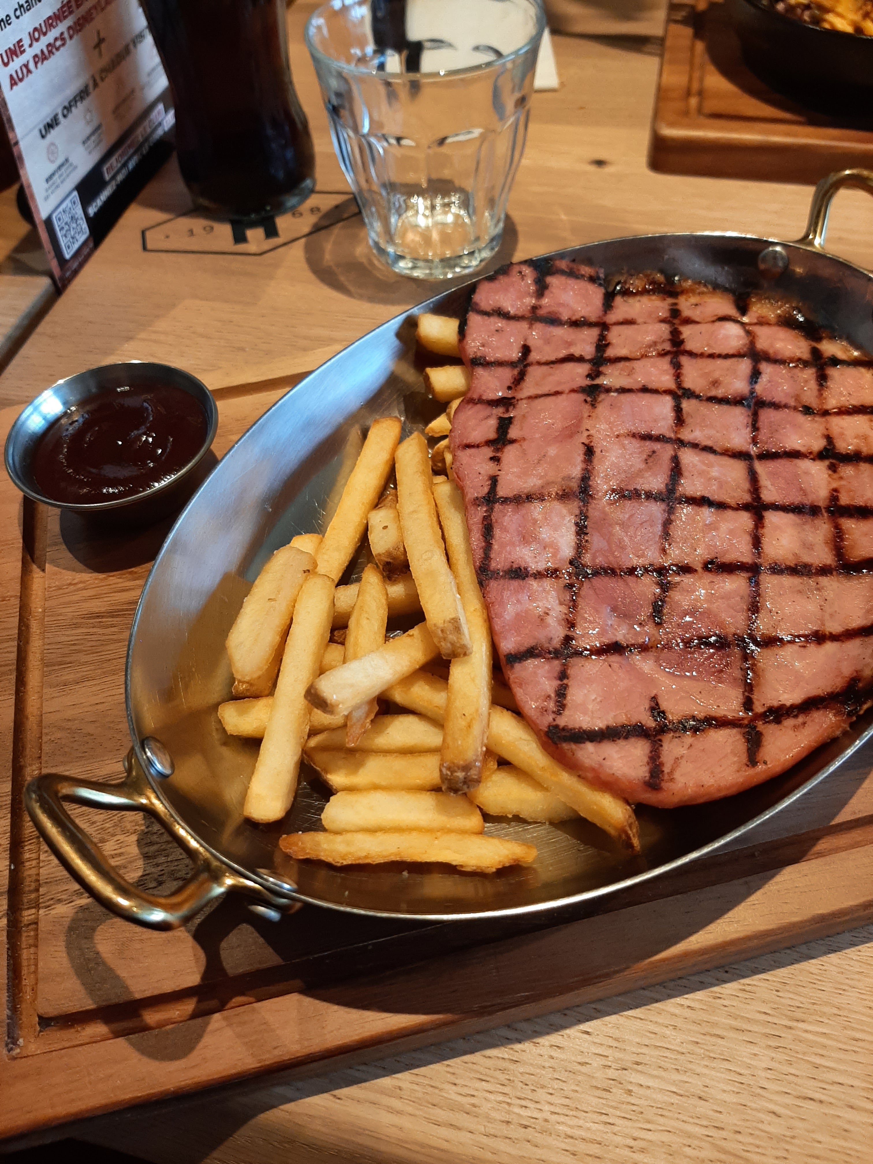 Je suis déçue par ce restaurant, les quantités sont ridicules, la qualité de viande n'est pas terrible, les assiettes en plastique et des frites dans un cône c'est pas génial pour manger. Nous n'avons pas goûté le dessert. Les toilettes sont propres et la serveuse super gentille. Dans la lignée de buffalo grill en plus cher.