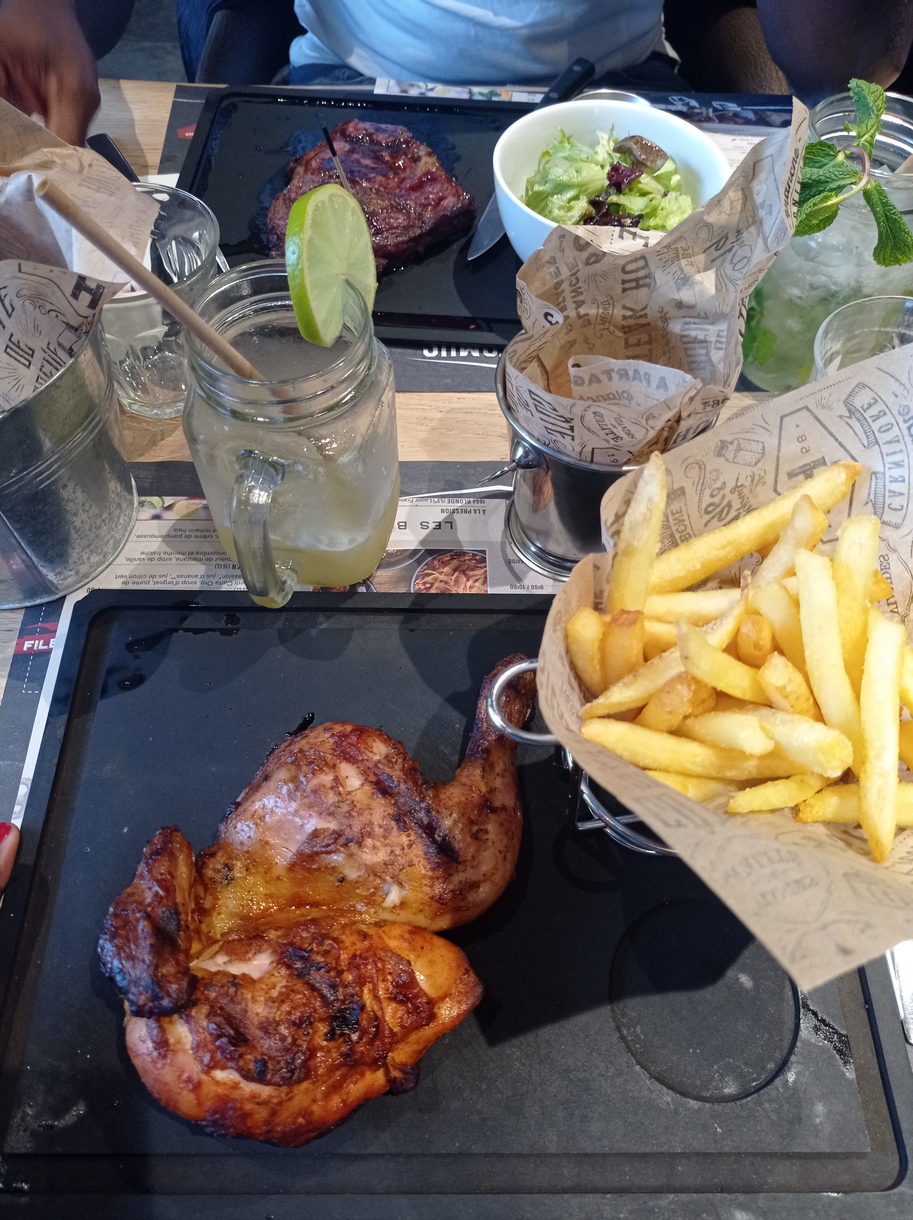 On a commander notre steck avec boisson Tout est reglo au debut Apres 13h les serveurs nous a dit qu on doit payer et sortir Mm si on a commender un autre boisson avec des chips J ai passé au wc et tt d un coup elle a pris tous nos boissons Elle nous harcèle just pour quitter l endroit Mm cas pour une autre famille qui ont commencé a manger la salade apres les plats Et tt d un coupe elle arrive pour dire qu on a fermé cet endroit On dirait qu on est arrivé pour manger gratuitement Quelle niveau Je recommande pas cet endroit Et surtt a genvilliers 😫😫😫😫