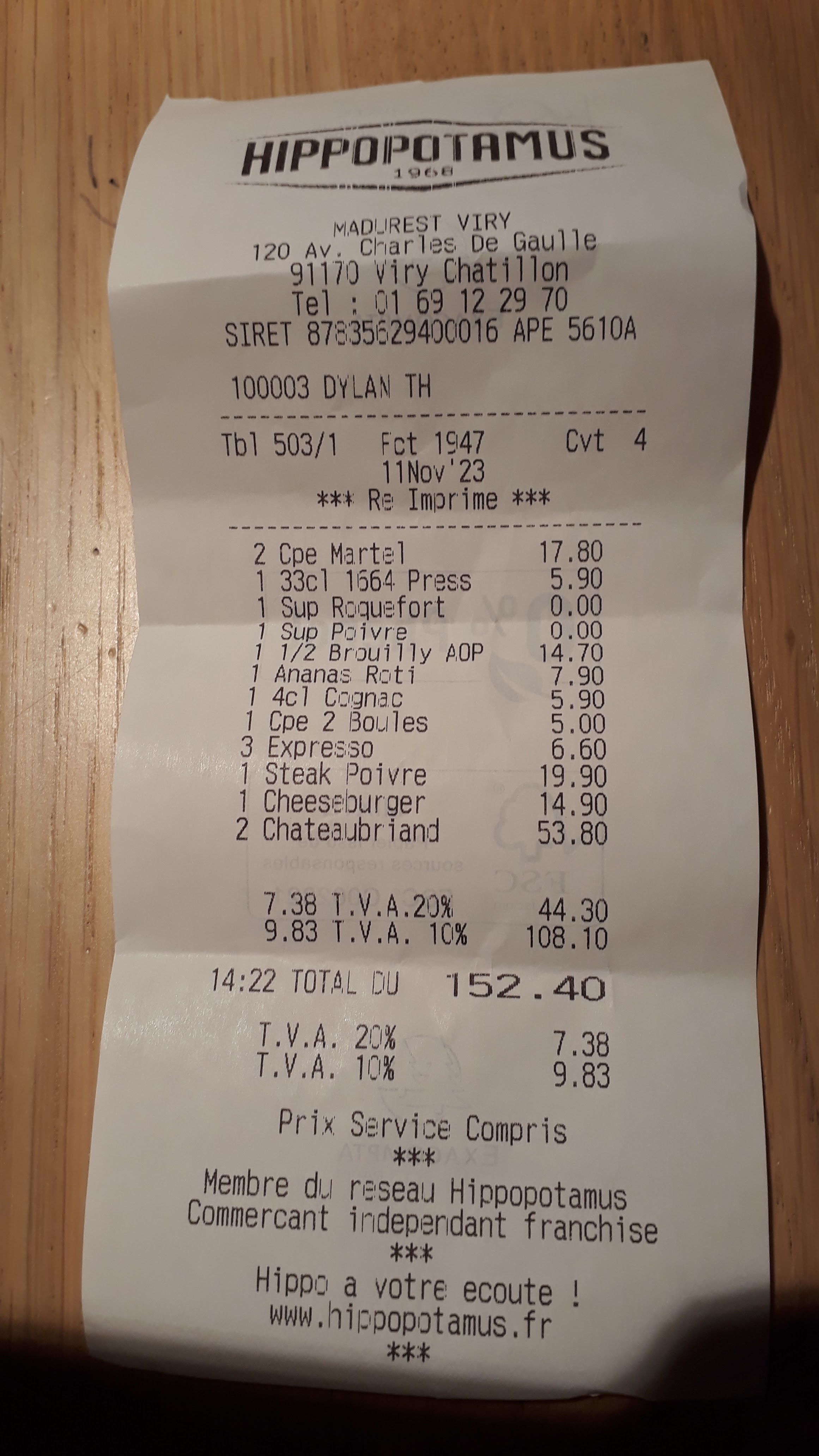 Ambiance Hippopotamus connue et reconnue. Les plats étaient copieux et sans faute. Mention spéciale pour l’angus argentine qui était top top top ! Merci à Enzo ;)
