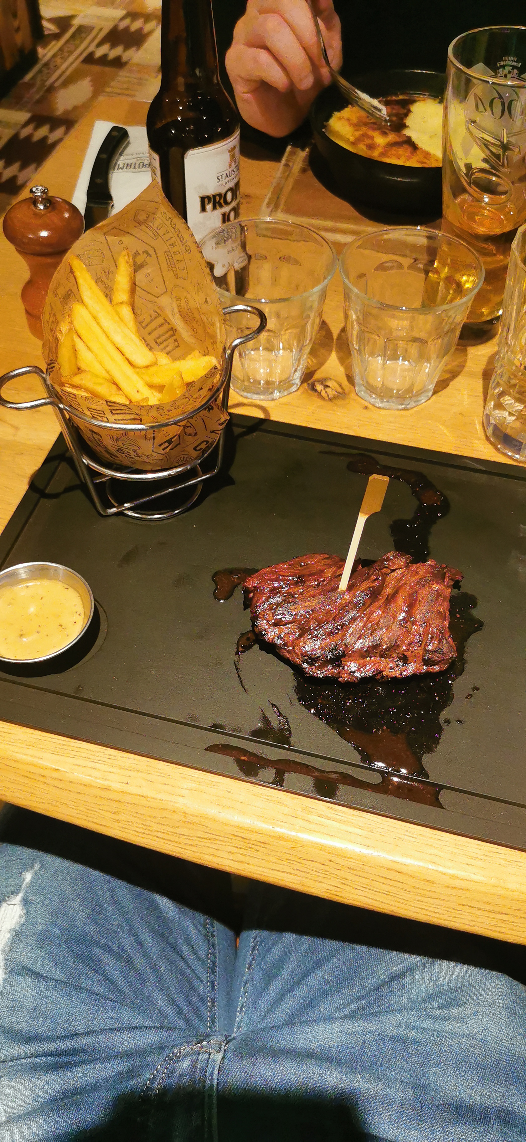 au niveau cuisine les patatas bravas n'en avaient que le nom....mal cuites avec une sauce sans gout jetée par dessus, la viande était bonne et cuite selon les gouts de chacun mais les sauces insipides, la pomme de terre au four froide au milieu....dommage !