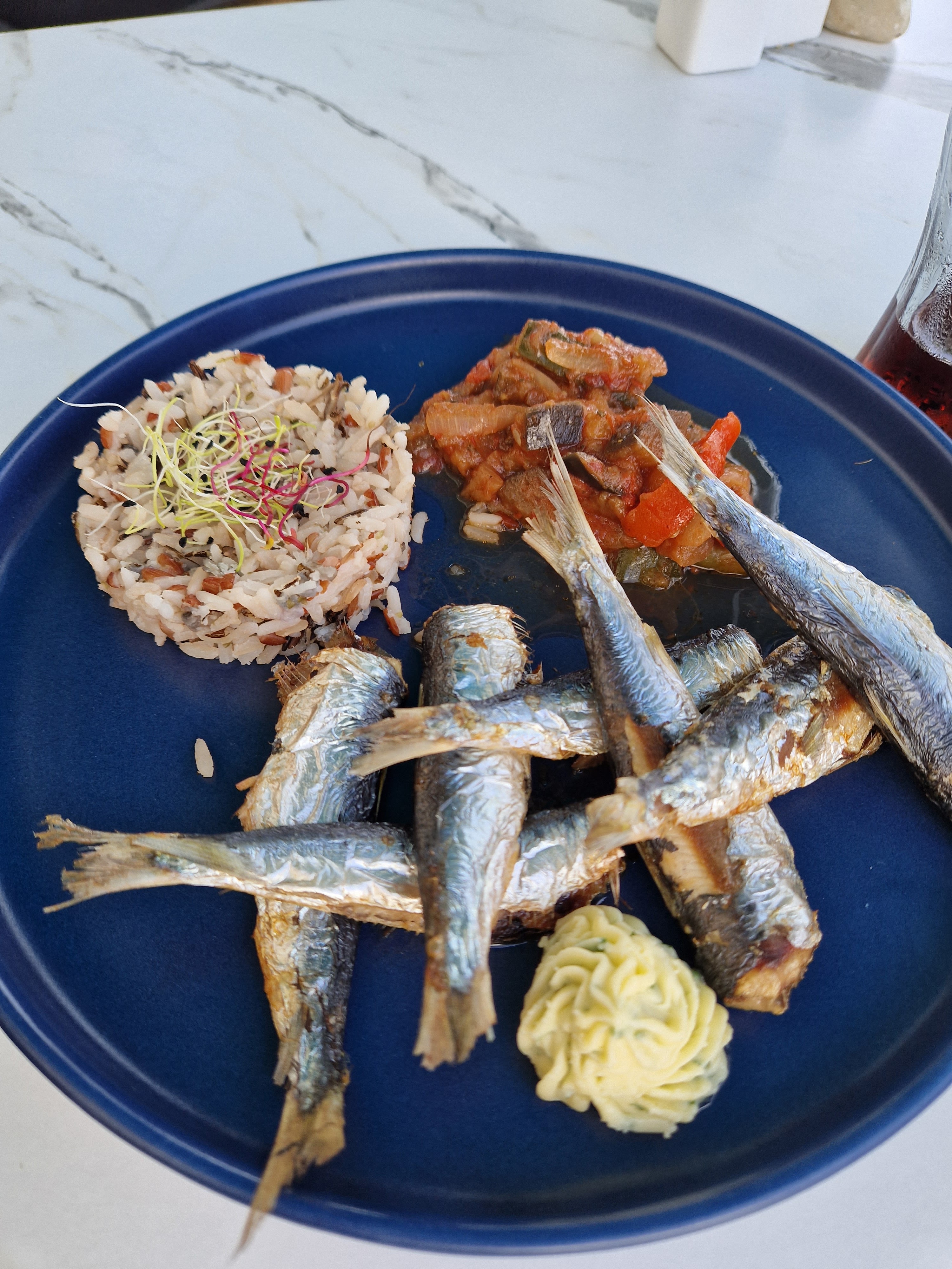 Déjeuner en famille. Les menus enfants ont été servis très vite : c’était bon frais et copieux. Nos plats à nous également très frais et bons (sardines et moules). Service efficace et agréable. Desserts maison très bons également . Expérience très agréable