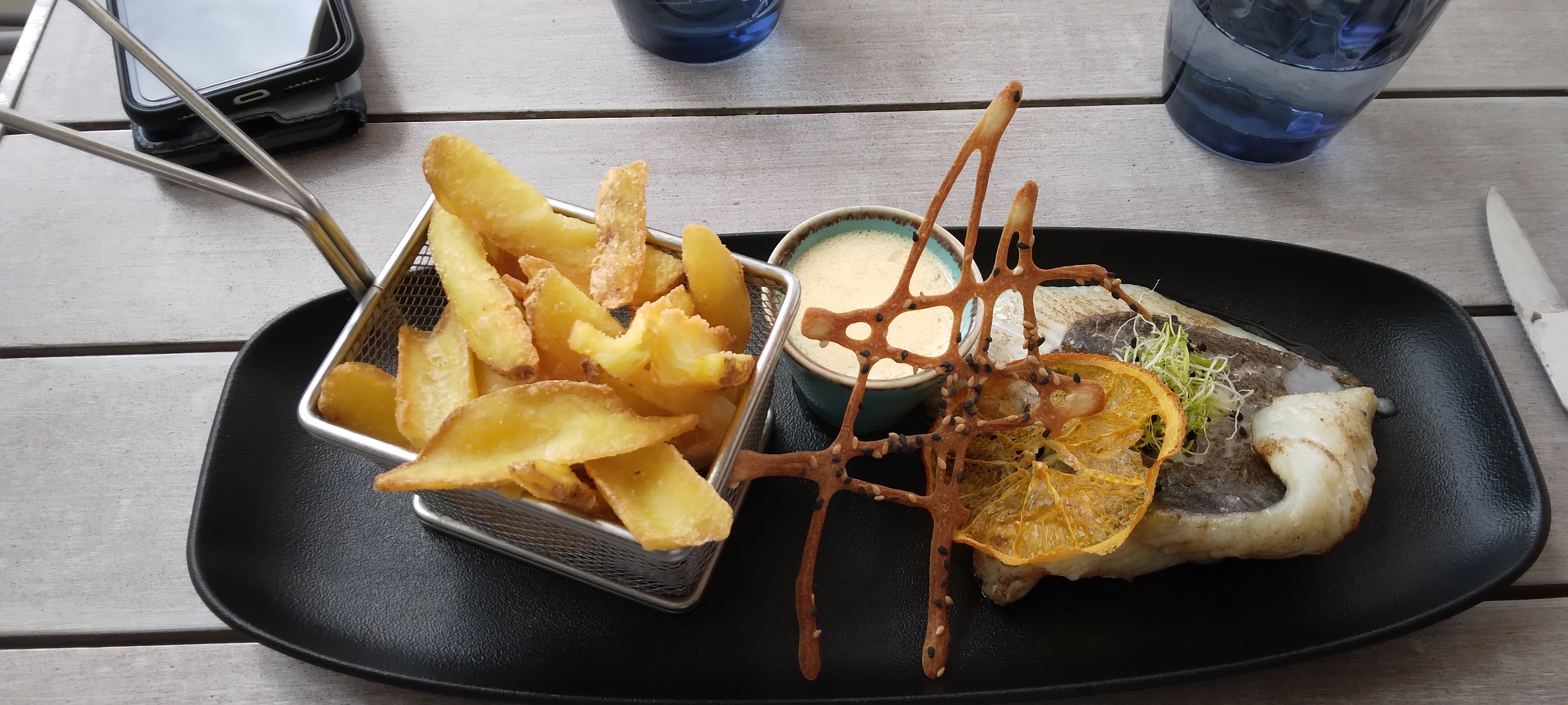 J'ai pris un fish and chips de sardines. Les sardines étaient très bonnes mais servies en toute petite quantité (entre 6 a 8 maximum, mini morceaux de sardines frits). Il y avait un très grand décalage entre le cornet de frites énorme et cette toute petite quantite de sardines. Le plat m'a coûté 17,50 € ,et ca m'a donné l'impression d'avoir mangé quasiment que des frites.... Je l'ai signalé ,mais aucun geste commercial effectué. Je ne recommande absolument pas ce plat là !