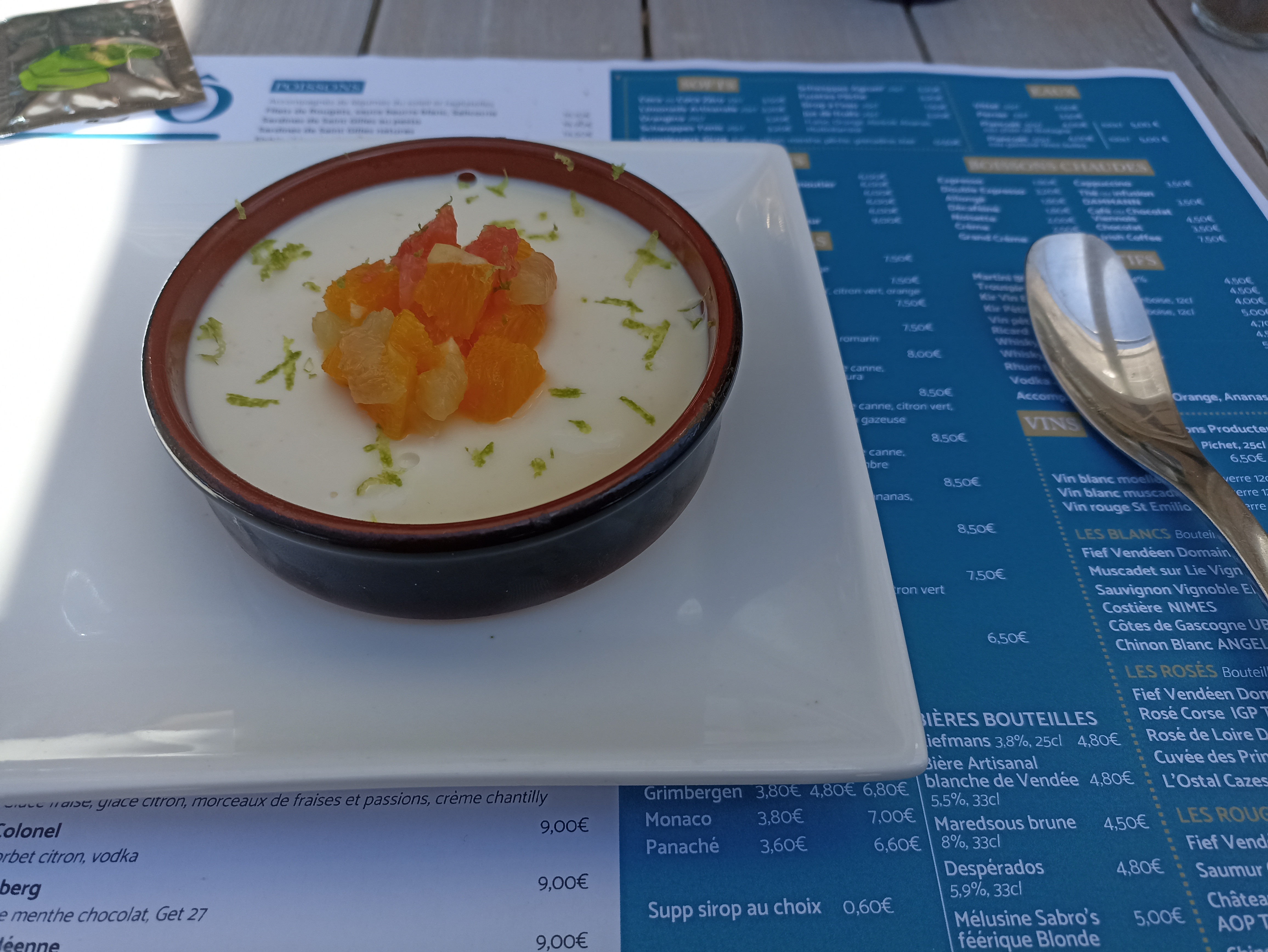 Nous avons juste bu des verres pour se rafraîchir après la plage et nous y sommes allé à 2 reprises car le personnel est extrêmement agréable, emplacement face à la mer et tarifs corrects. Nous avons pu voir passer quelques plats qui donnaient envie. Un grand merci au personnel pour l'accueil et la gentillesse je recommande