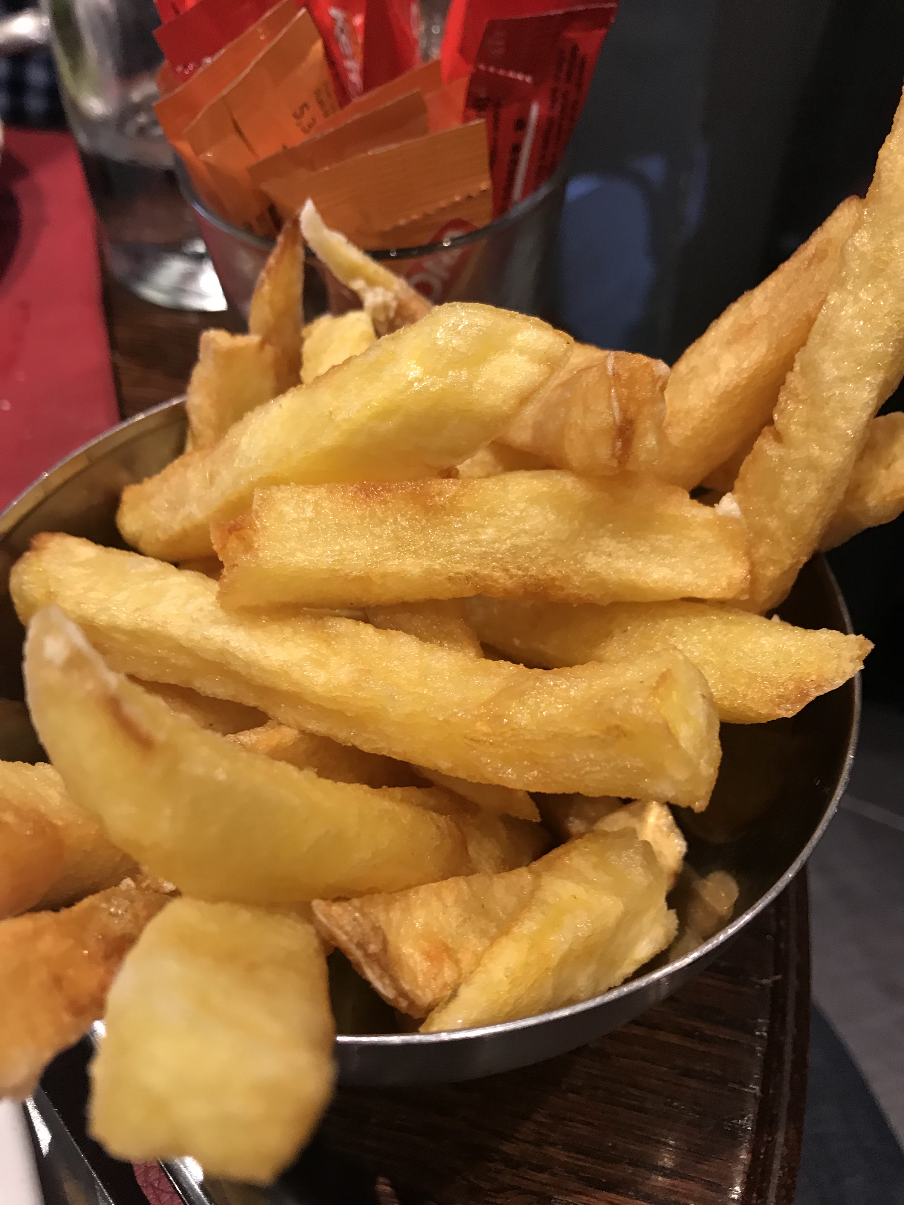 Un restau / bistrot très sympathique, tout d’abord grâce à la bonne humeur du gérant, puis par l’ambiance cosy du lieu et enfin par la nourriture qui y est bonne. Sans prétention, sans fioritures, des produits de qualités, des saveurs, une présentation plutôt soignée. Niveau plats : très bonne entrecôte, sauce au roquefort top et frites VRAIMENT maison (minuscule bémol : peut-être manquerait-il un peu de frites dans l’assiette, on en aurait bien mangé une bonne dizaine de plus !) Et un hamburger au comté tout simple mais bien réussi ! Pour les desserts, pas déçus non plus ; le tiramisu était très bon et la petite tarte Bourdaloue aussi, on sent que c’est du fait maison et fait minute ! Le seul bémol du repas serait le choix (très restreint) de bières pression : si vous aimez les bonnes belges goûtues ou les IPA, vous serez déçus ; seules de l’Affligem, de la Heineken et une bière italienne légère et fade sont disponibles… Heureusement pour les amateurs, la carte des vins est bien plus remplie et variée ! Bref, je recommande cette adresse 👍🏻
