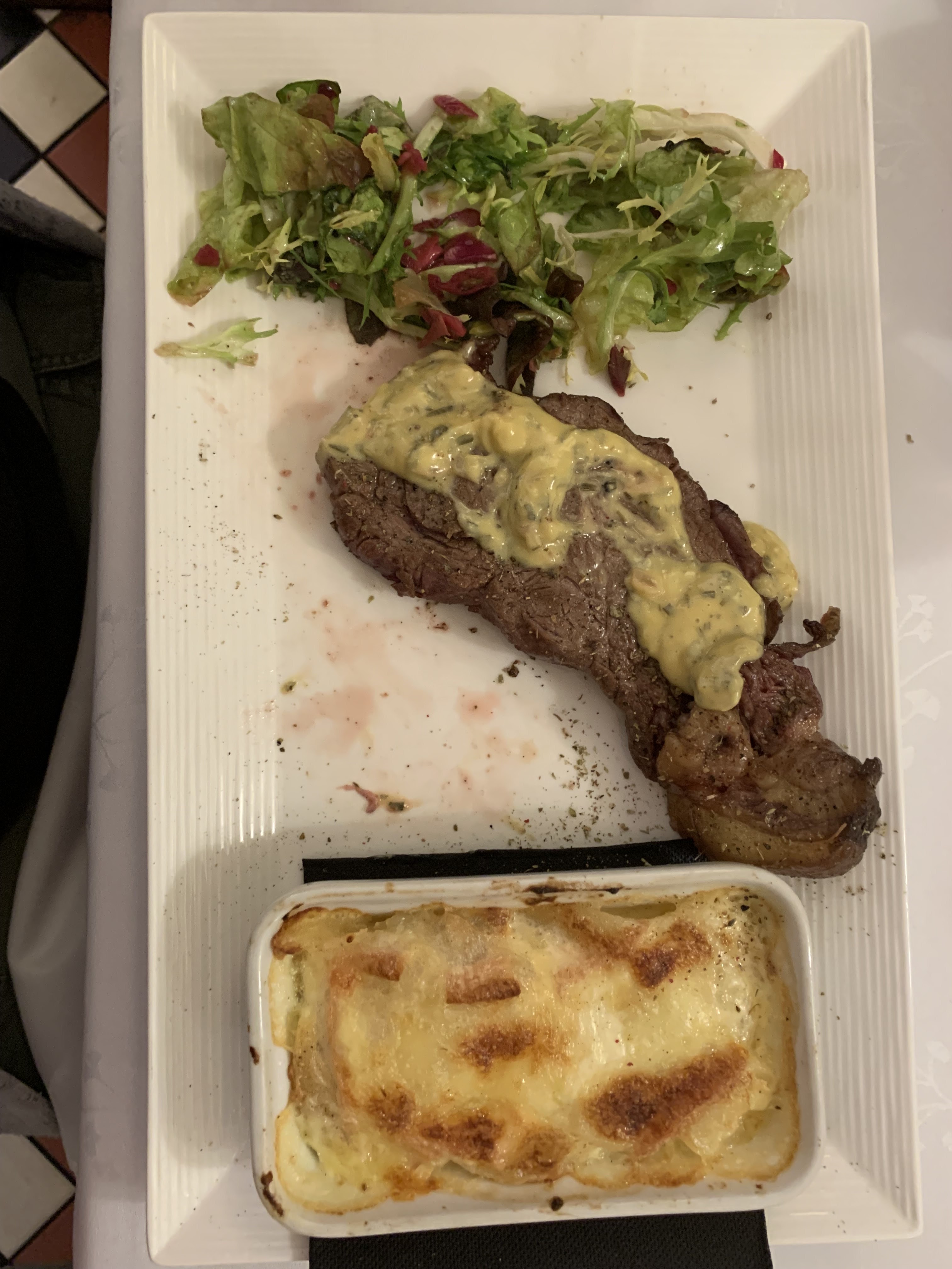 Très Bon restaurant,un régal hormis un petit bémol pour la cuisson des potatoes cramé,voir la photo, repas à 23 euros, c'est vraiment très raisonnable, service rapide et personnel aimable