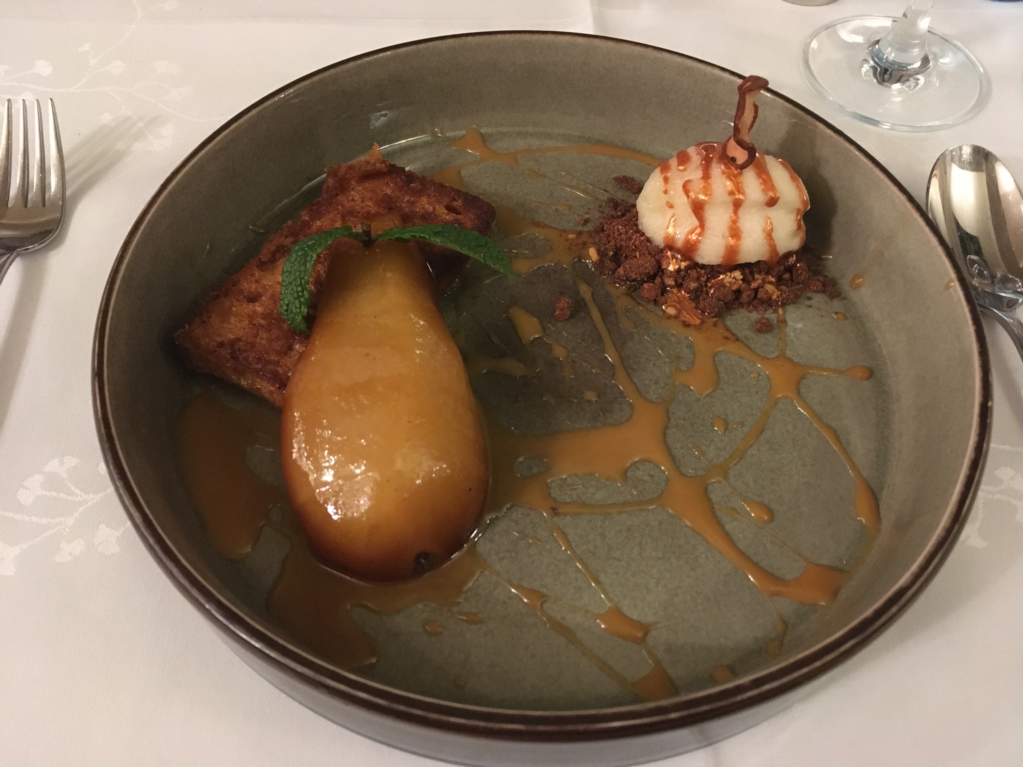 Très bel accueil et service impeccable, par contre plat, coquille St Jacques snackee, pas assez relevée. Une chose qui m'énerve, ce sont les suppléments dans le menu, 7 euros pour le plat et pour le dessert 11 euros pour un irish coffee gourmand.