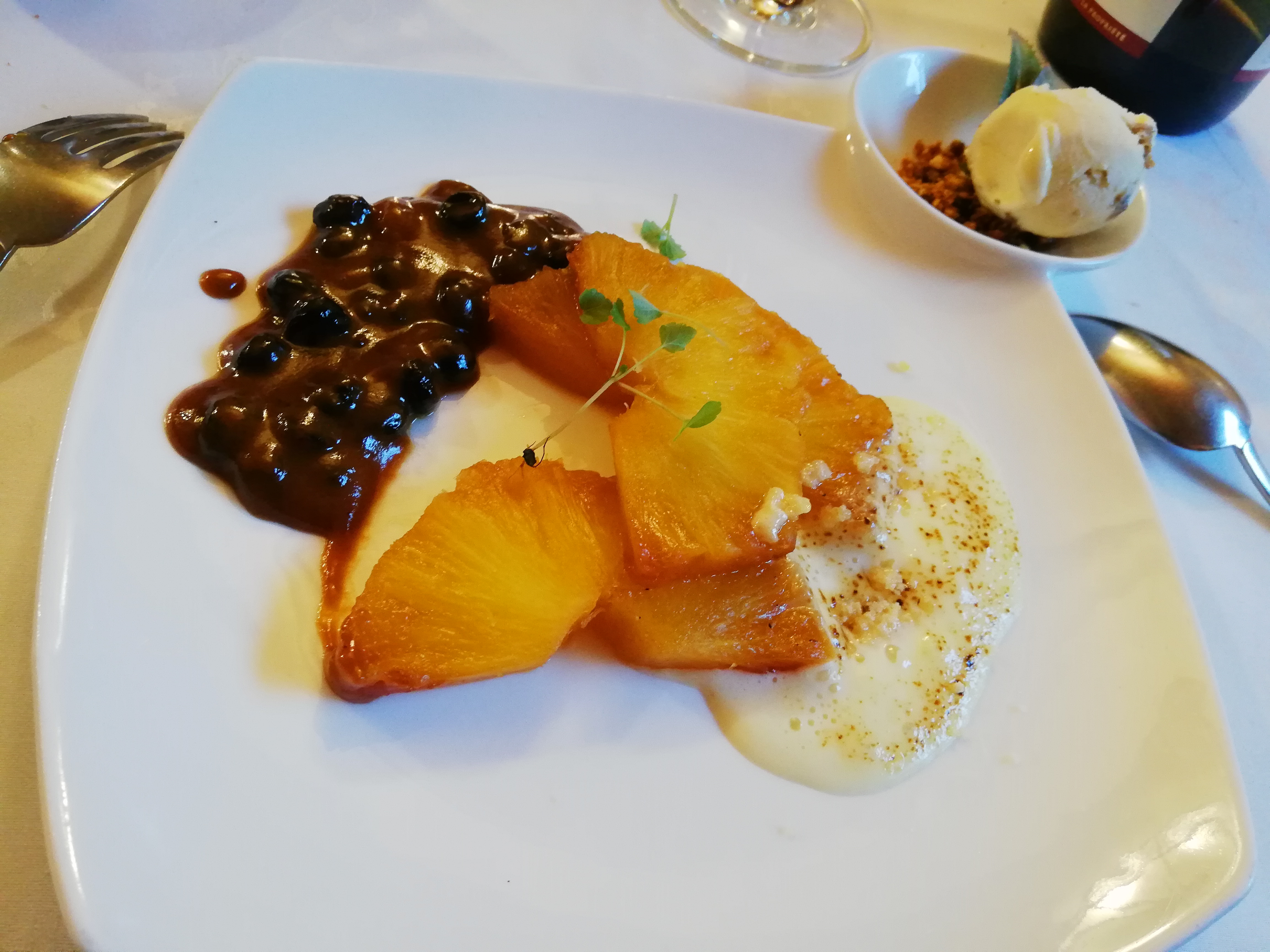 Le hasard nous a conduit dans ce lieu magnifique au décor somptueux, à la cuisine délicieuse, au patron nous demandant si tout allait bien à de nombreuses reprises. C'était un anniversaire que nous fêtions donc il y a eu en dessert un gâteau spécial anniversaire puis le dessert commandé précédemment Merci pour cette gentille attention et bravo au Chef nous nous sommes régalées