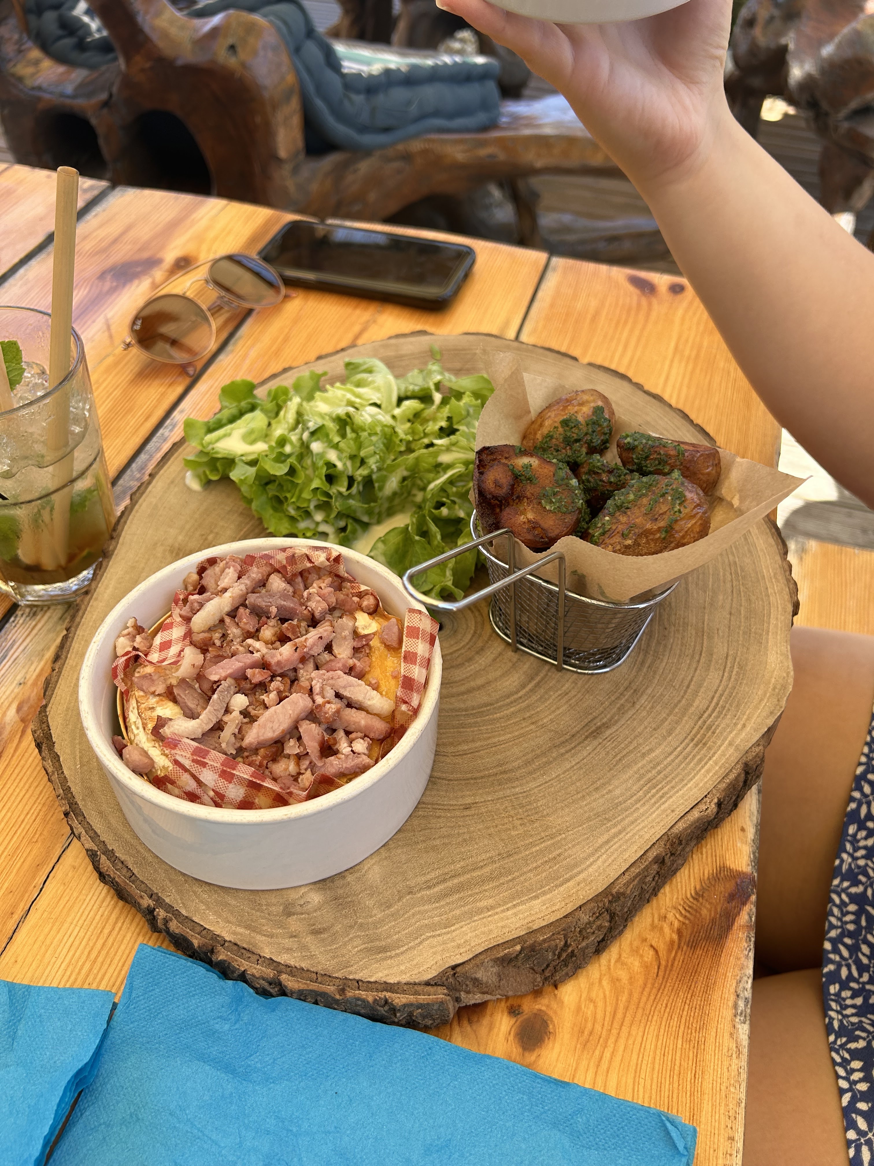 Personnel très sympa. Bon appétit. Top des boissons. Vous pouvez même faire une réservation. Ambiance sympa sous la pergola en raphia. Toujours mon plaisir