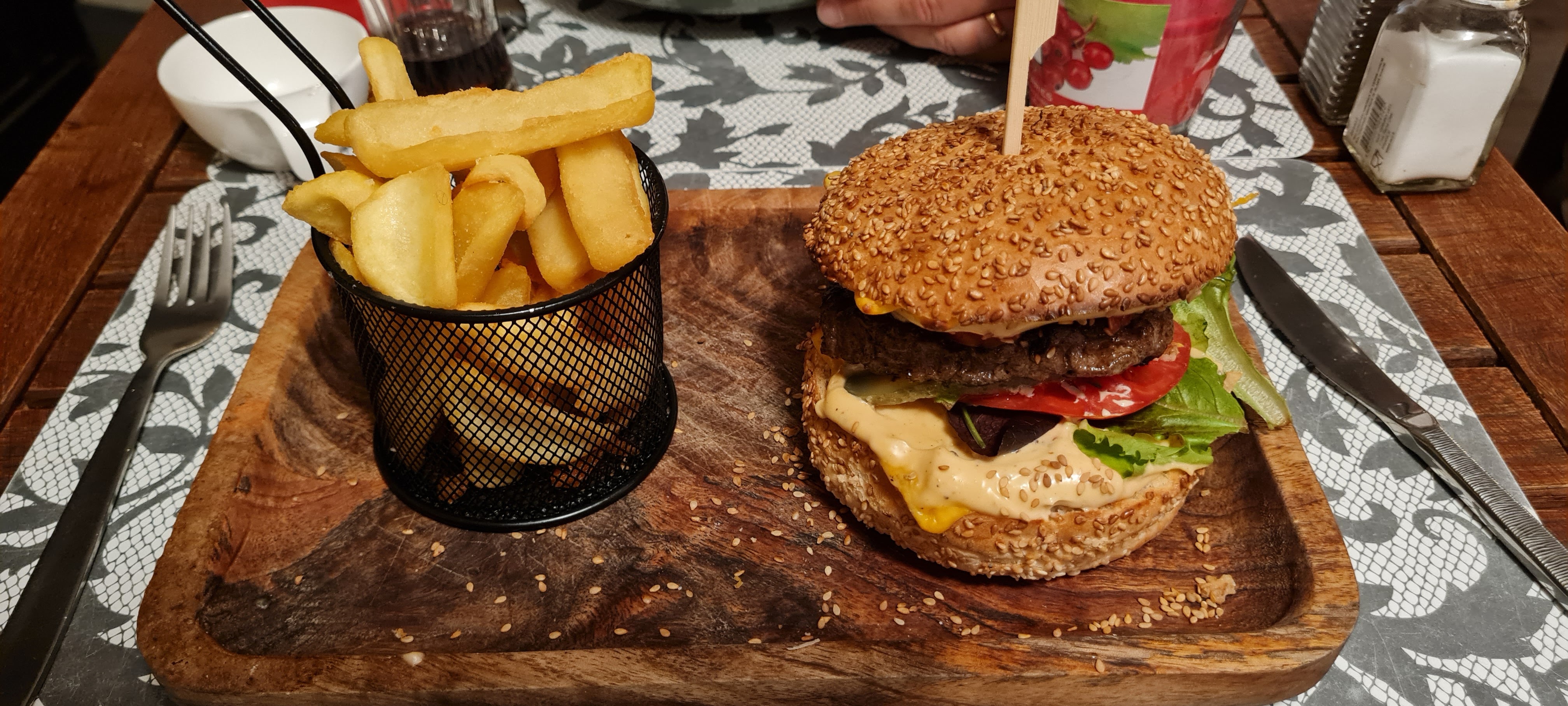 j'ai adoré ! produits de qualité et prix corrects ! on voulait partager une entrée, ils nous ont fait 2 petites assiettes... c'est rare ! ensuite, que du bonheur, même le Fiston a finit son hamburger maison, une tuerie comme il dit, c'est pas du macdo ! 🤣 et que dire du mien, au rougets...un régal ! ma Femme a trouvé ses ravioles excellentes...👍 je recommande donc si vous êtes de passage, ou passez pas très loin 😉