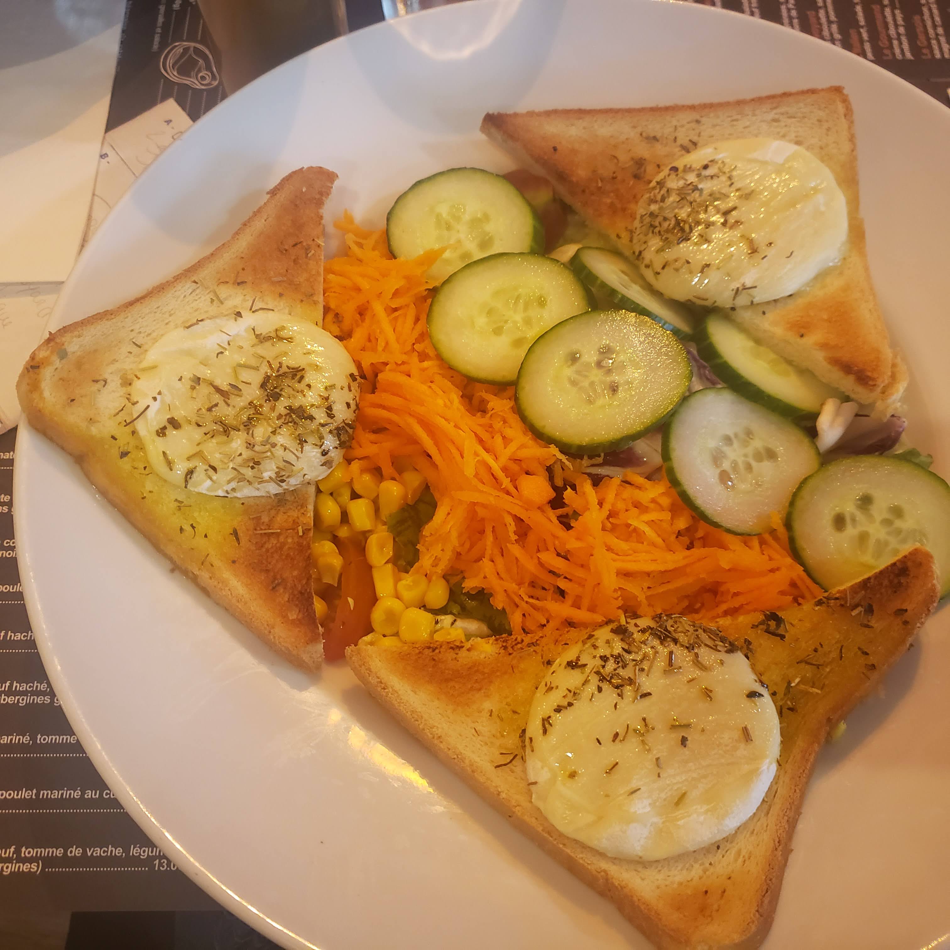 Bonne salade au chèvre. Et de bons burgers à la carte. Nous reviendrons