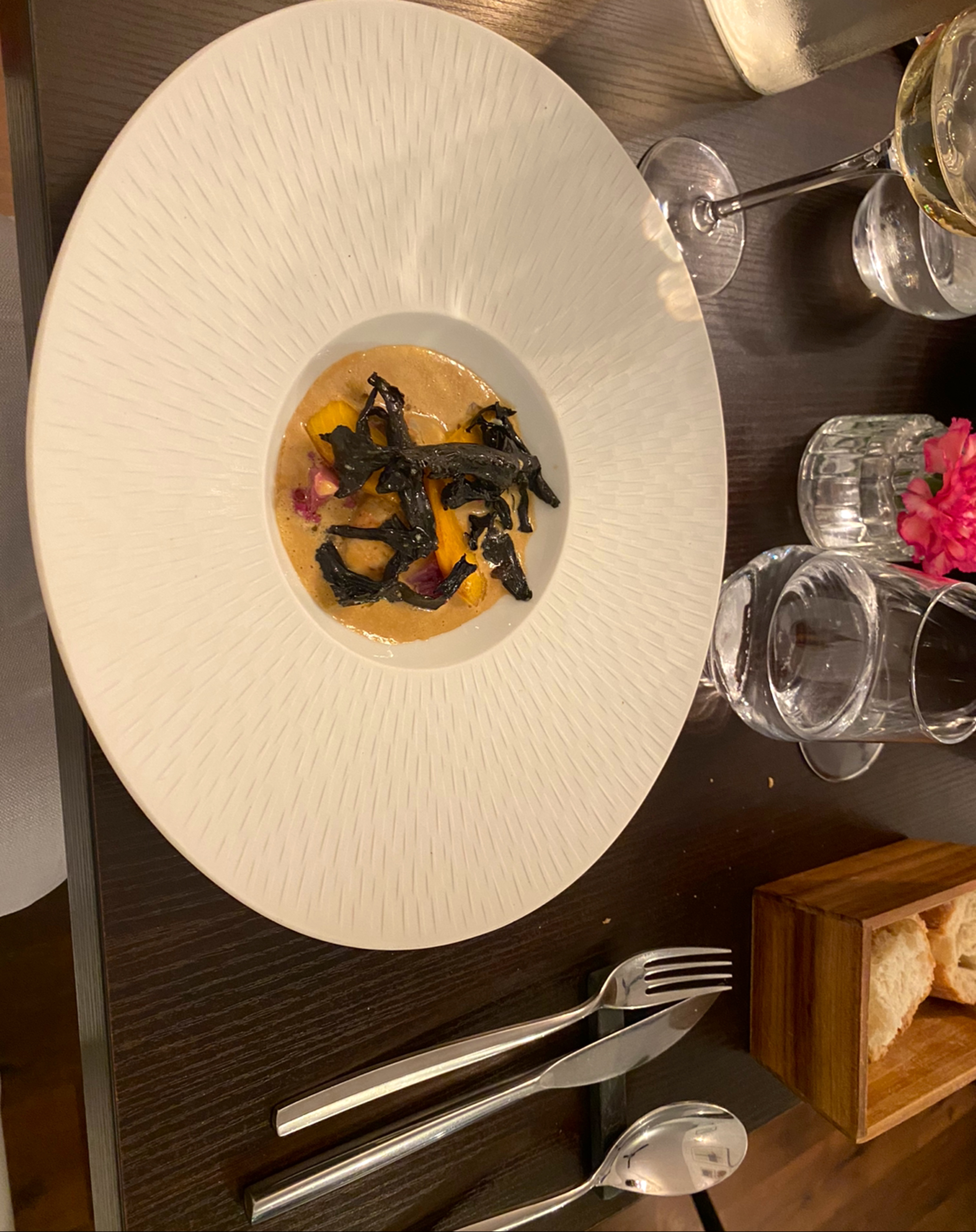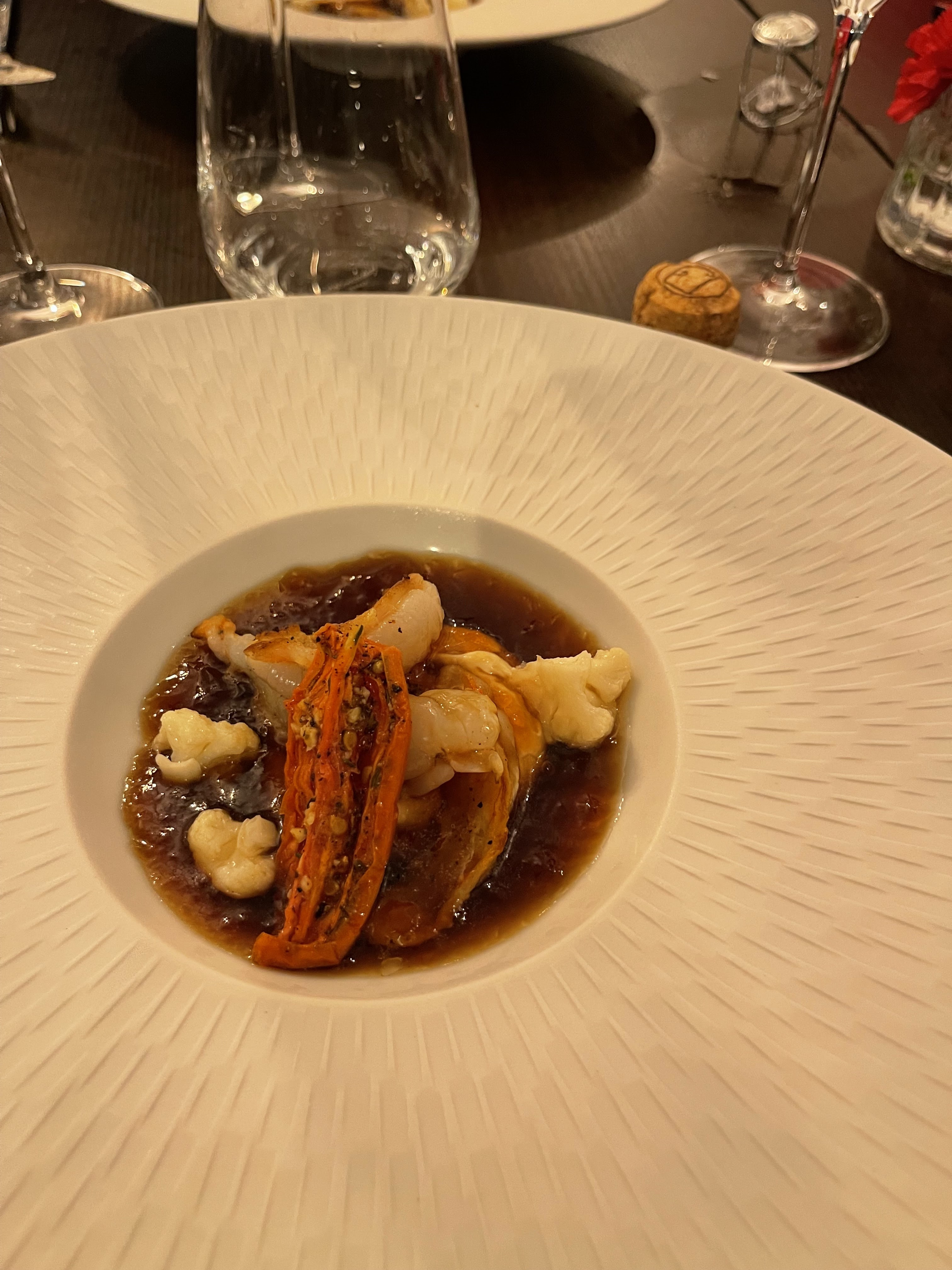 Une option végétarienne (presque vegan) incroyable ( je demanderai la prochaine fois si l'option vegan est possible aussi :) ) ! Je ne suis pas une habituée des gastronomiques, encore moins depuis que j'ai changé mon alimentation, peu propose de vraies belles alternatives, et quelle surprise ! Merci pour ce moment délicieux ! Un vraie équilibre des saveurs, c'était parfait.