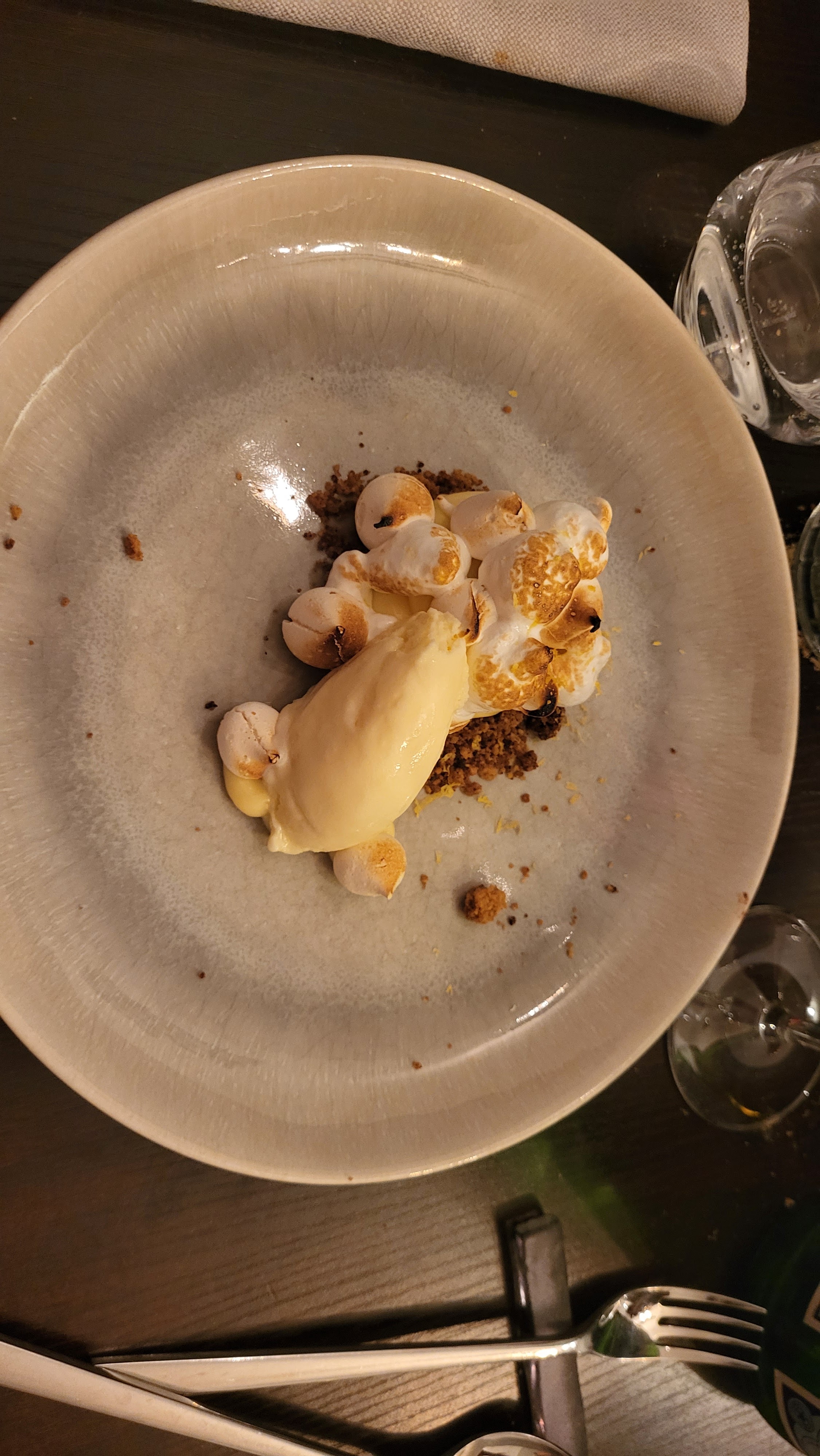 Très bon dîner, dessert pavlova incroyable. Beaucoup de travail, peut être plus du côté démonstratif technique que du plaisir, à mon avis. Bravo à l'équipe.