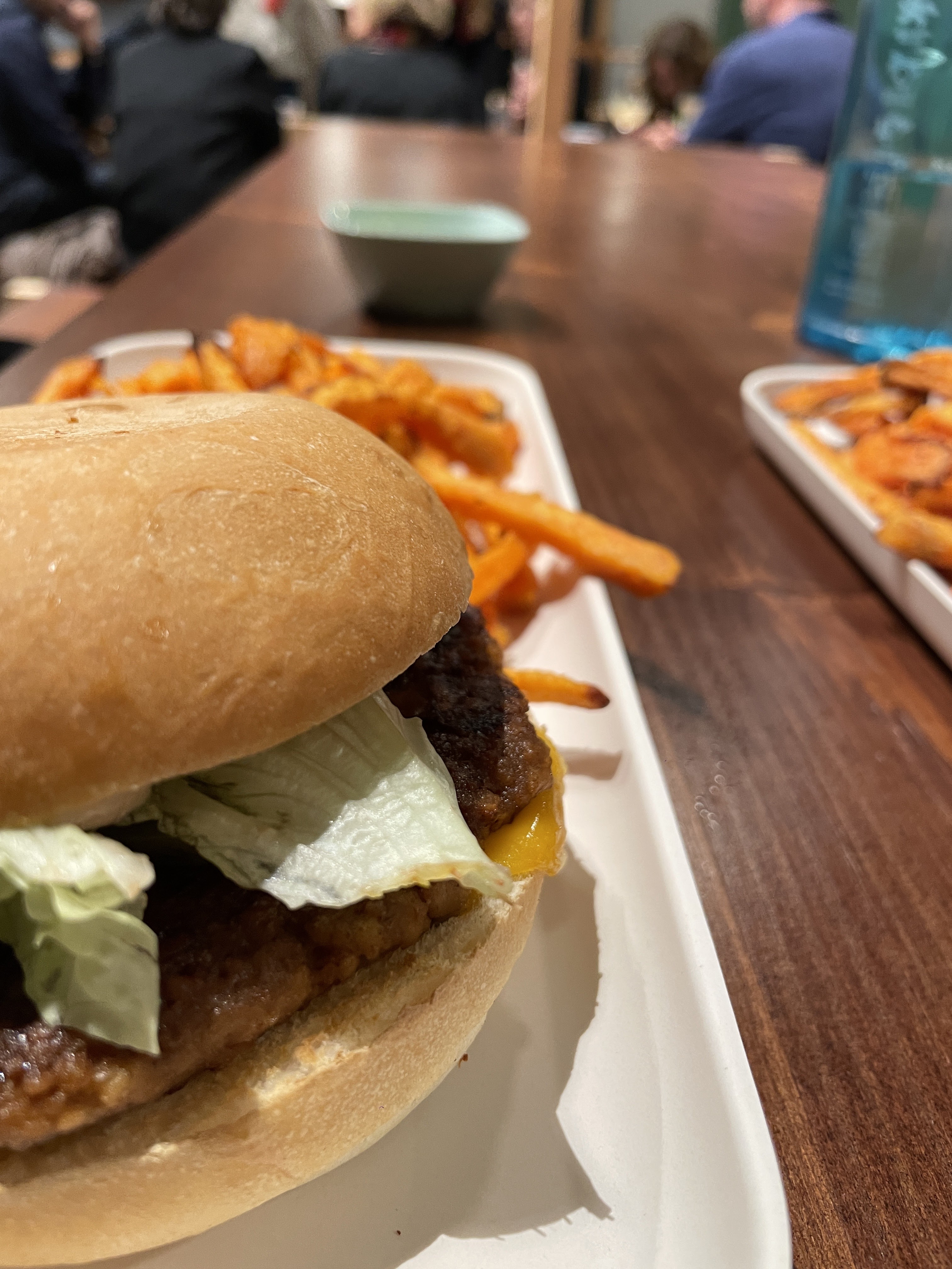 Endroit très sympa pour partager un verre et des bons moments avec des amis ou en famille. ✨ Le burger que j’ai pris n’était pas à mon goût. Et je trouve que les portions sont petites pour le prix payé.