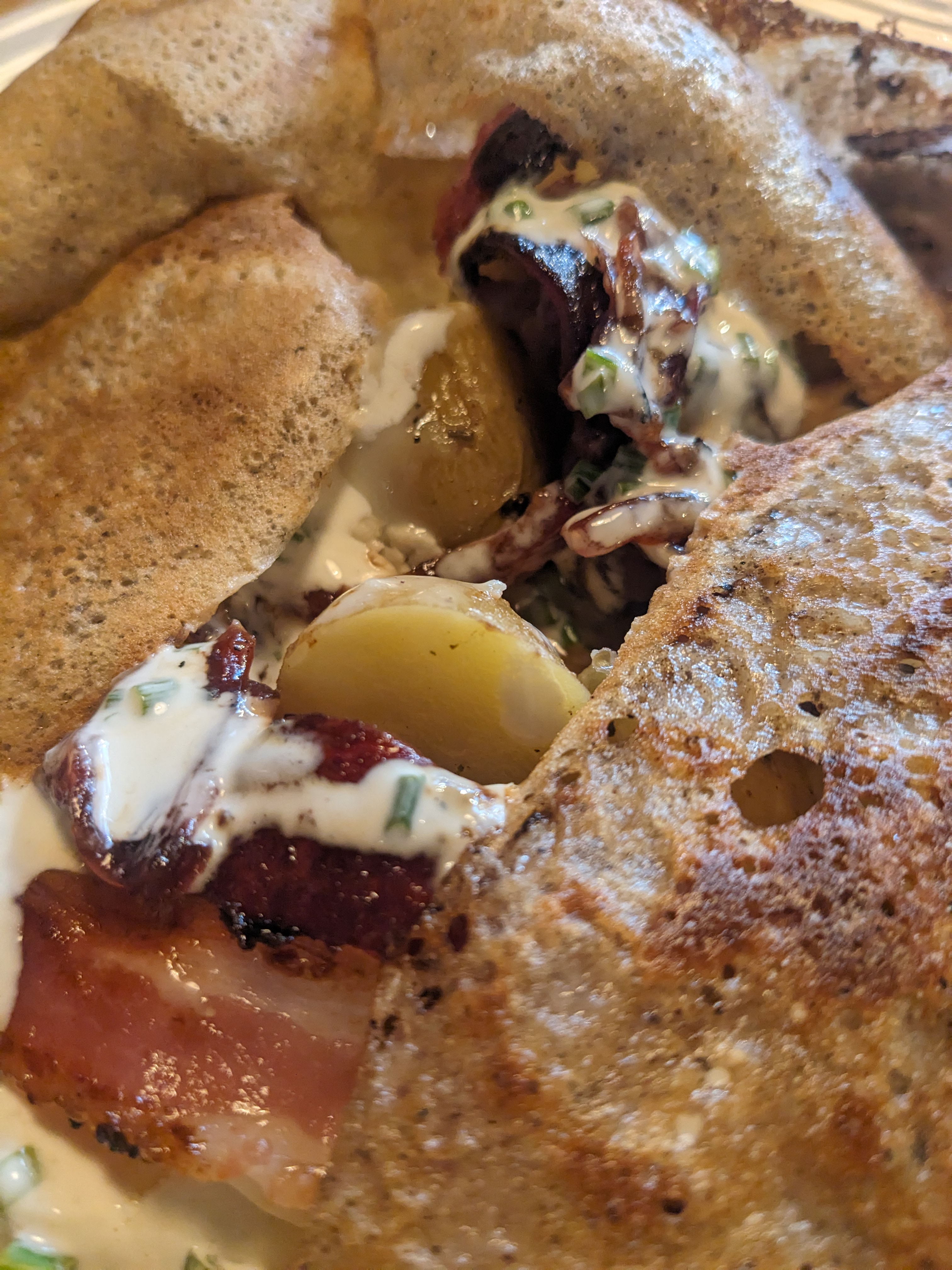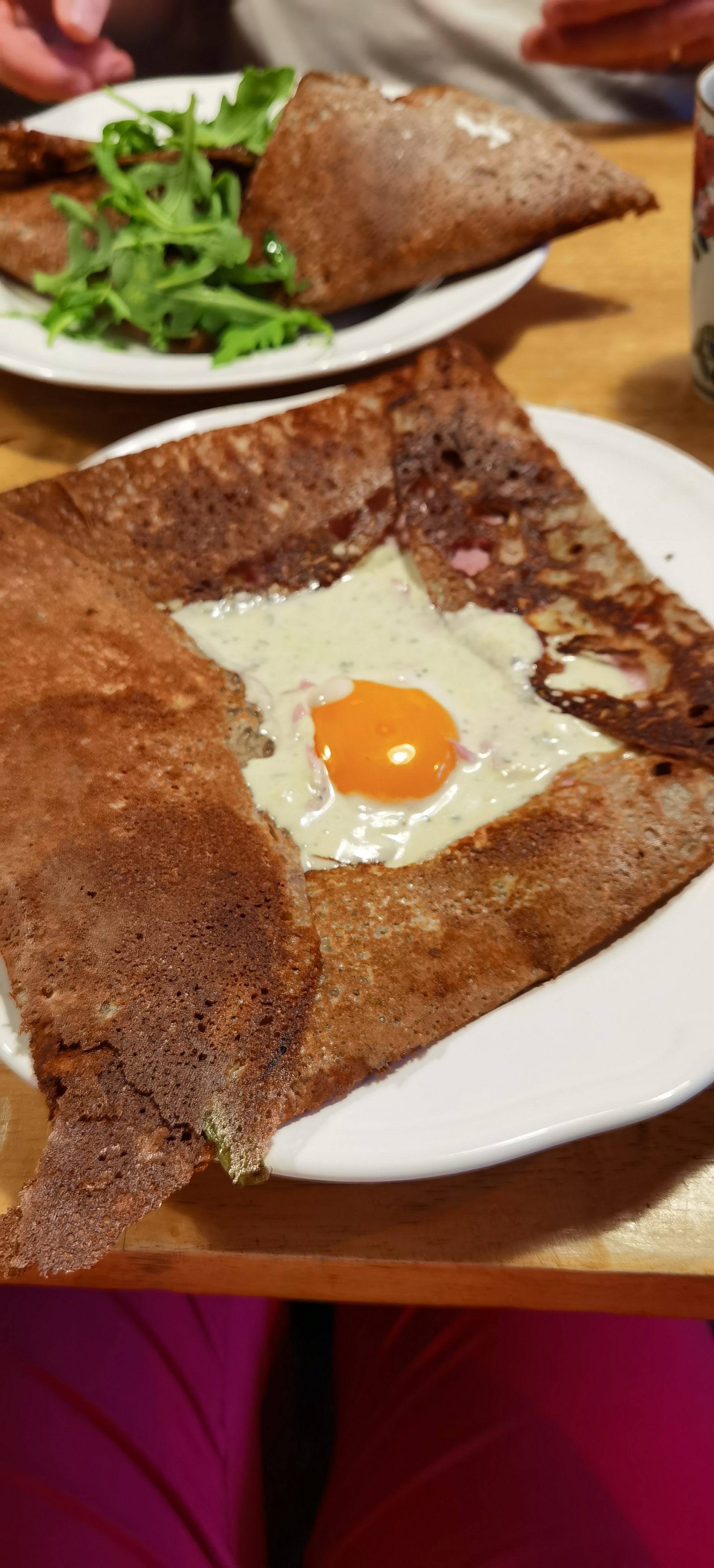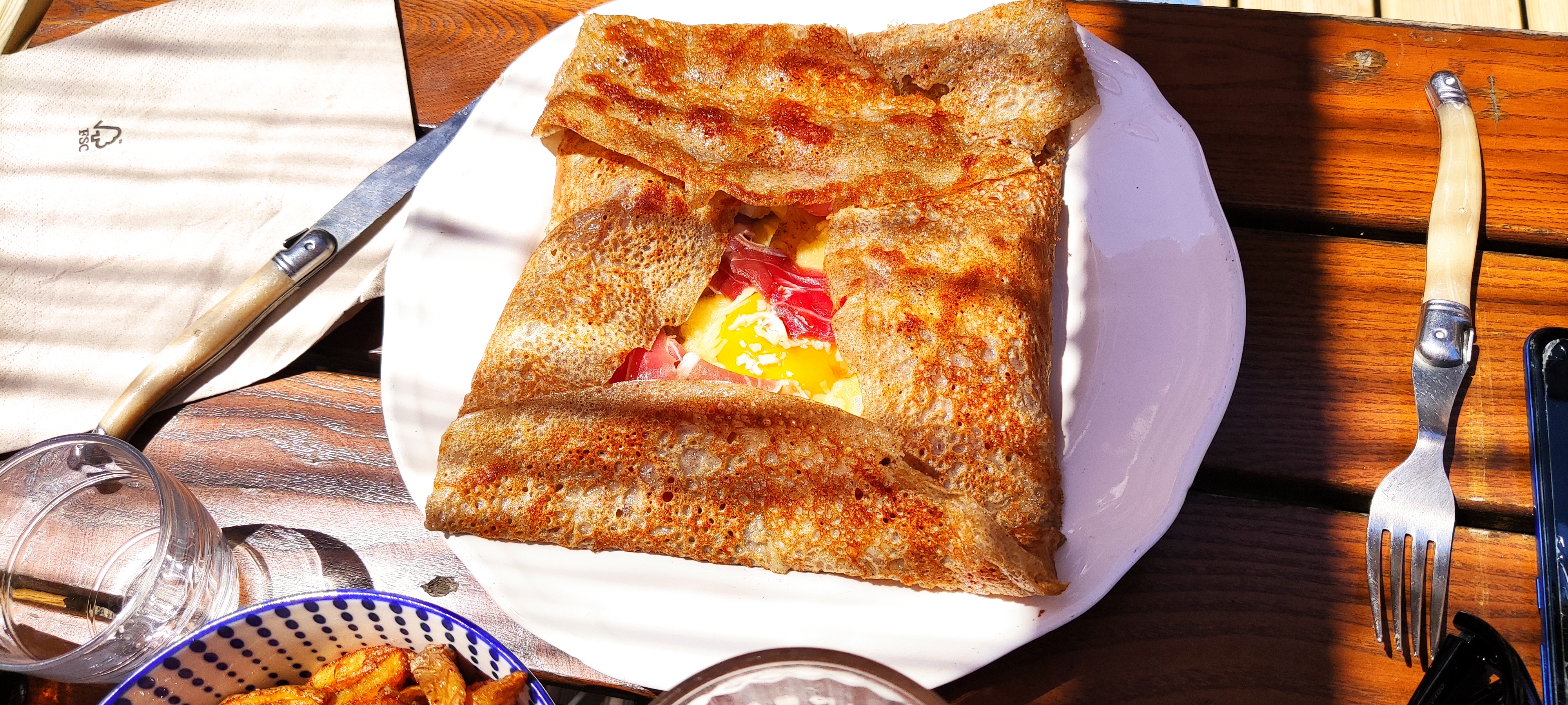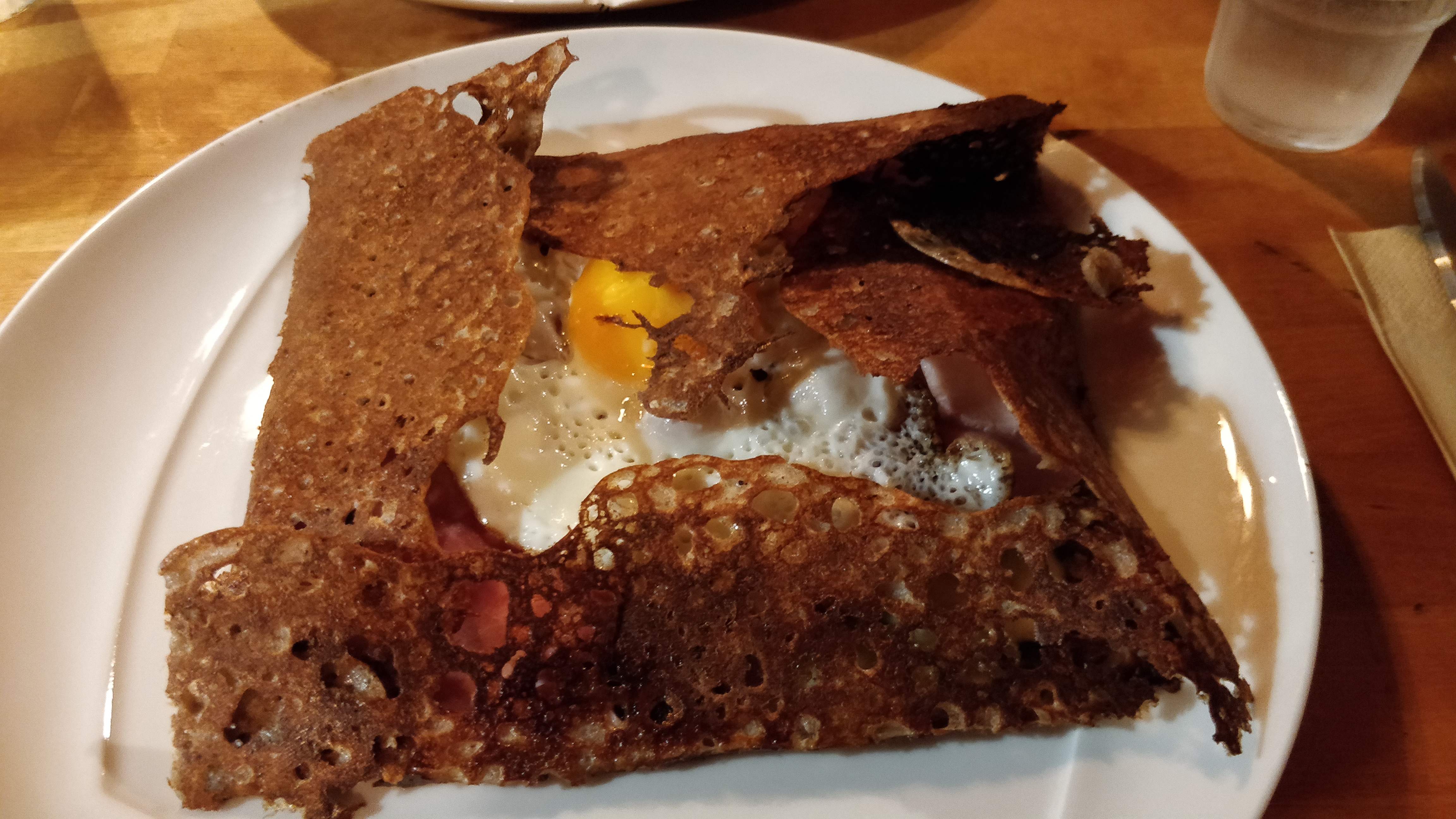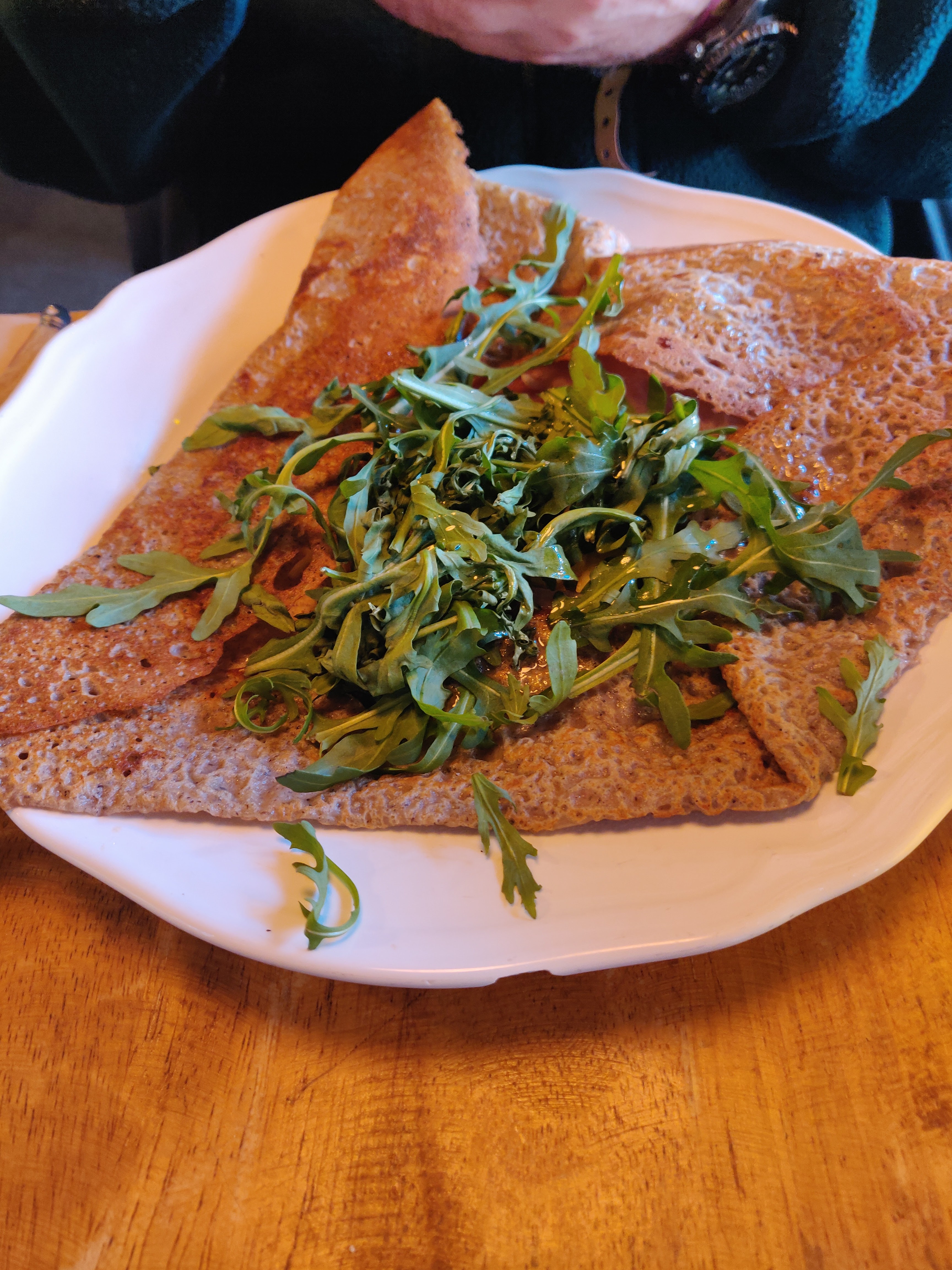 Crêpes salées délicieuses et présentation colorées. L’Auvergne est Bretonne, nous en sommes maintenant absolument sûr. Merci à la jeune équipe pour le service. Pékab. Pokoù.