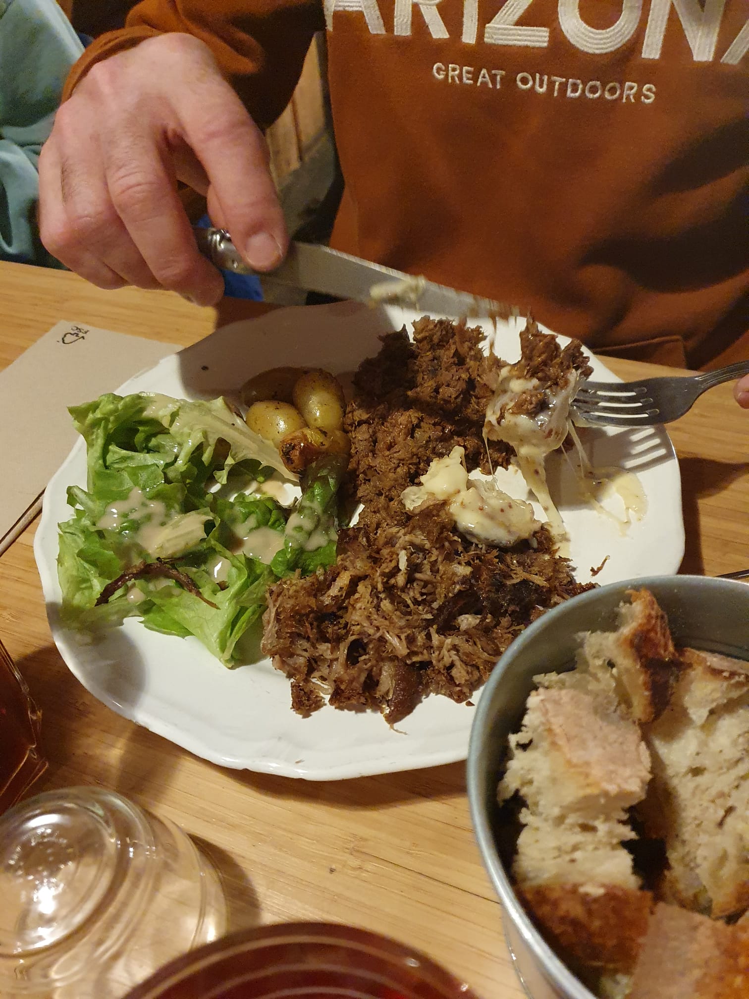 Bon mais déçu, nous voulions manger une bonne raclette traditionnelle… avec fromage fondu pommes de terre cuite entière, nous avons eu un plat de gratin de pommes de terre avec fromage à raclette et la charcuterie à côté rien à voir avec une bonne raclette traditionnelle dommage, Nous y retournerons pas l’année prochaine.