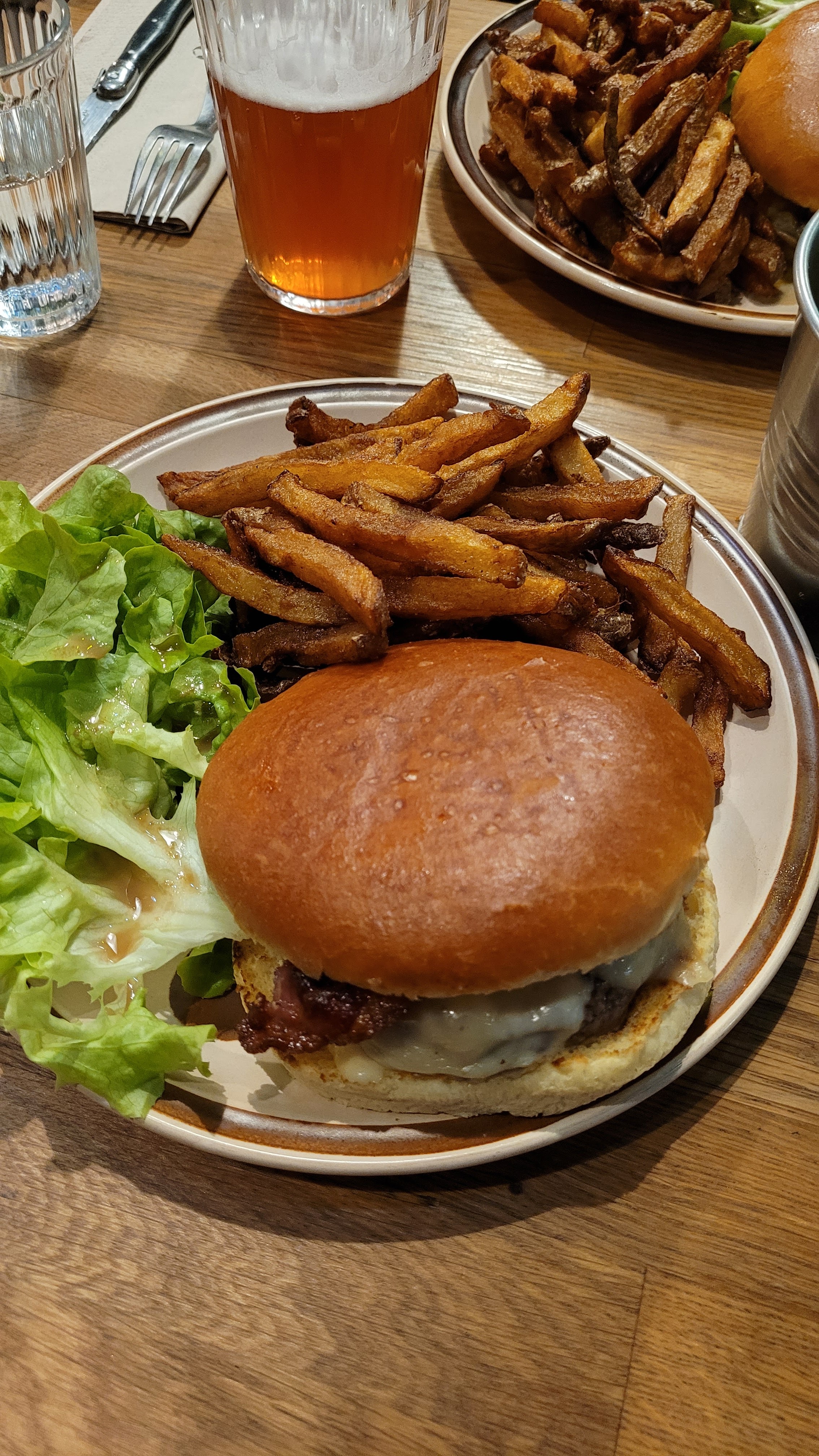 Deux repas en intérieur, le midi puis le soir. Nourriture excellente, ambiance chaleureuse. La déco est stylée. Nous recommandons vivement l'Andouillette gratinée au Saint-Nectaire, l'onglet de boeuf, ainsi que la fondue Auvergnate! Et ces p'tites patates là mmmmm. Avec la sauce au bleu mmmmmmmmm. Belles assiettes, si vous avez encore faim en sortant vous êtes un monstre. On a pas testé les galettes mais celles qu'on a vu passer avaient l'air titanesques. La playlist est aux p'tits oignons. Les deux gérants sont au poil. On imagine la bonne ambiance en cuisine vu les mélodies west coast qui s'en échappent. Foncez! Et prenez une bière en bouteille, elles sont artisanales et locales. La Gaïa blanche est un peu acide très bonne fraîche. Tarifs très honnêtes il me semble. Respect des consignes covid.