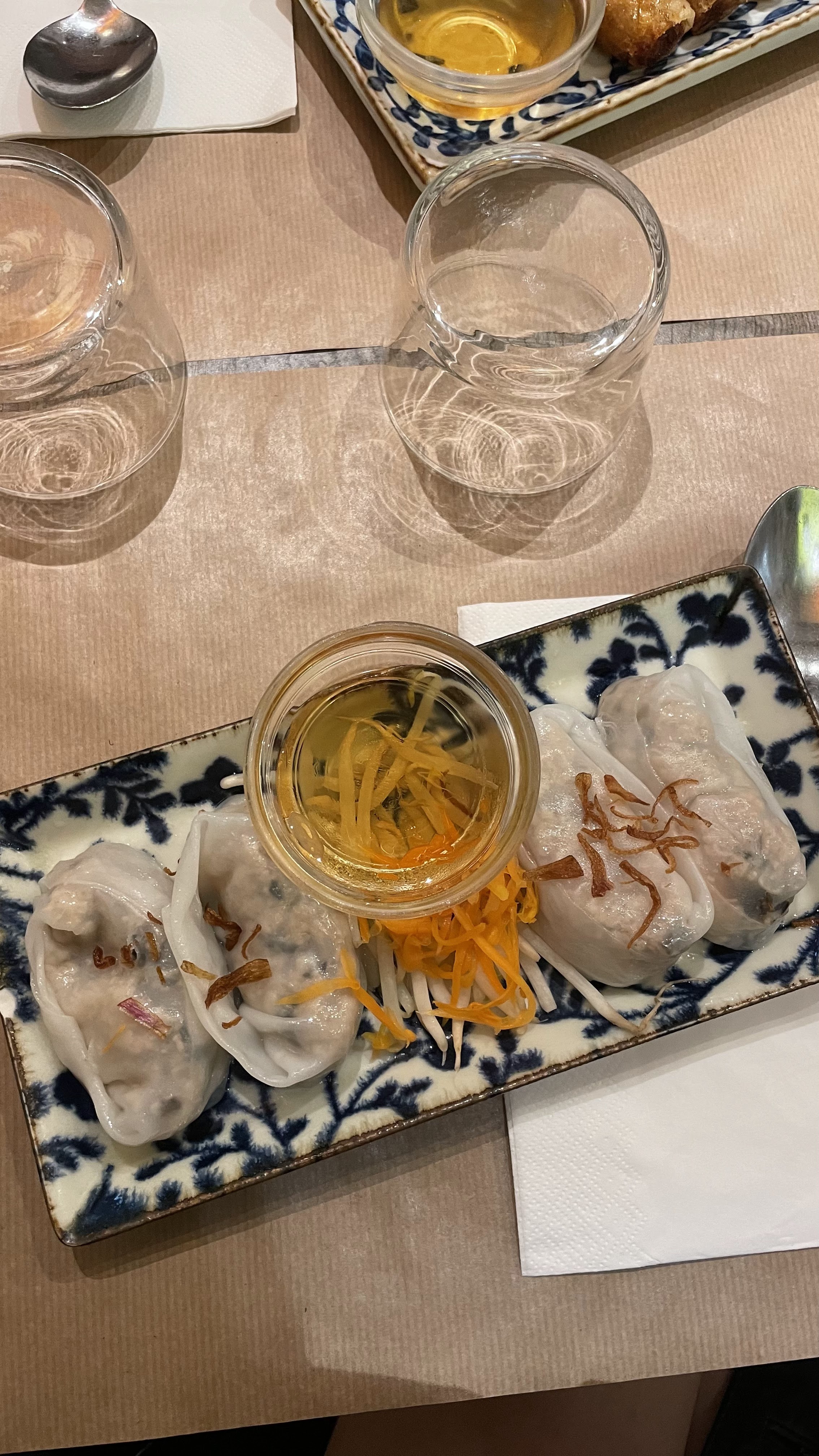 Nouveau resto Viêt du quartier. Cadre: joli,vietnamien et chinois Service: pas tres pro, brouillon,mais assez gentil Nourriture : assortiment entrée ( très recommandé par le serveur)mini portions mais maxi prix Plats insipides (à part le sel) exagérément chers. J'ai connu plus authentique.Très déçu car j'aime beaucoup la cuisine asiatique. Espérant que vous vous améliorerez.