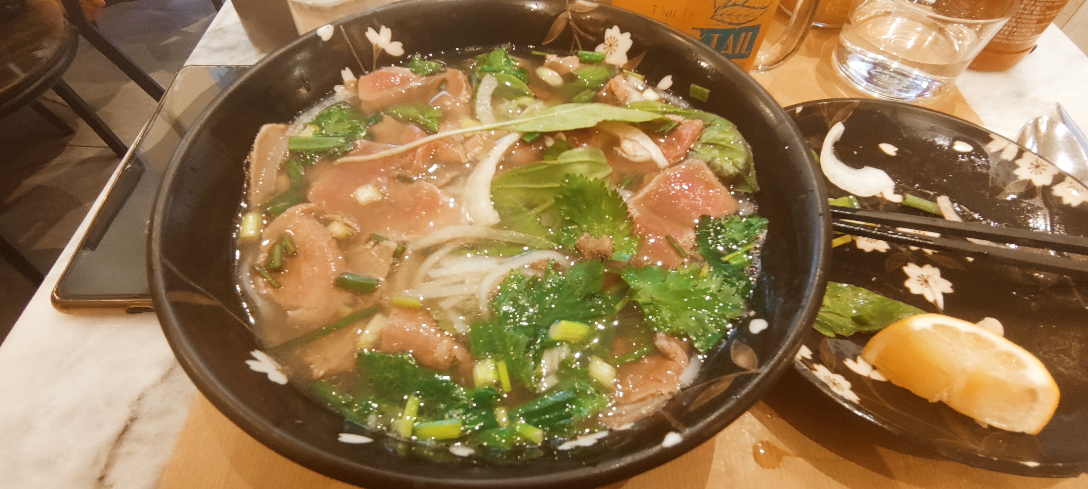 Première pho hier et pas la dernière je pense. Je me suis régalée et je suis sortie repue. Joli décor et ambiance agréable, le bo bun pris par la personne qui m'accompagnait etait tout aussi à tomber. On reviendra !