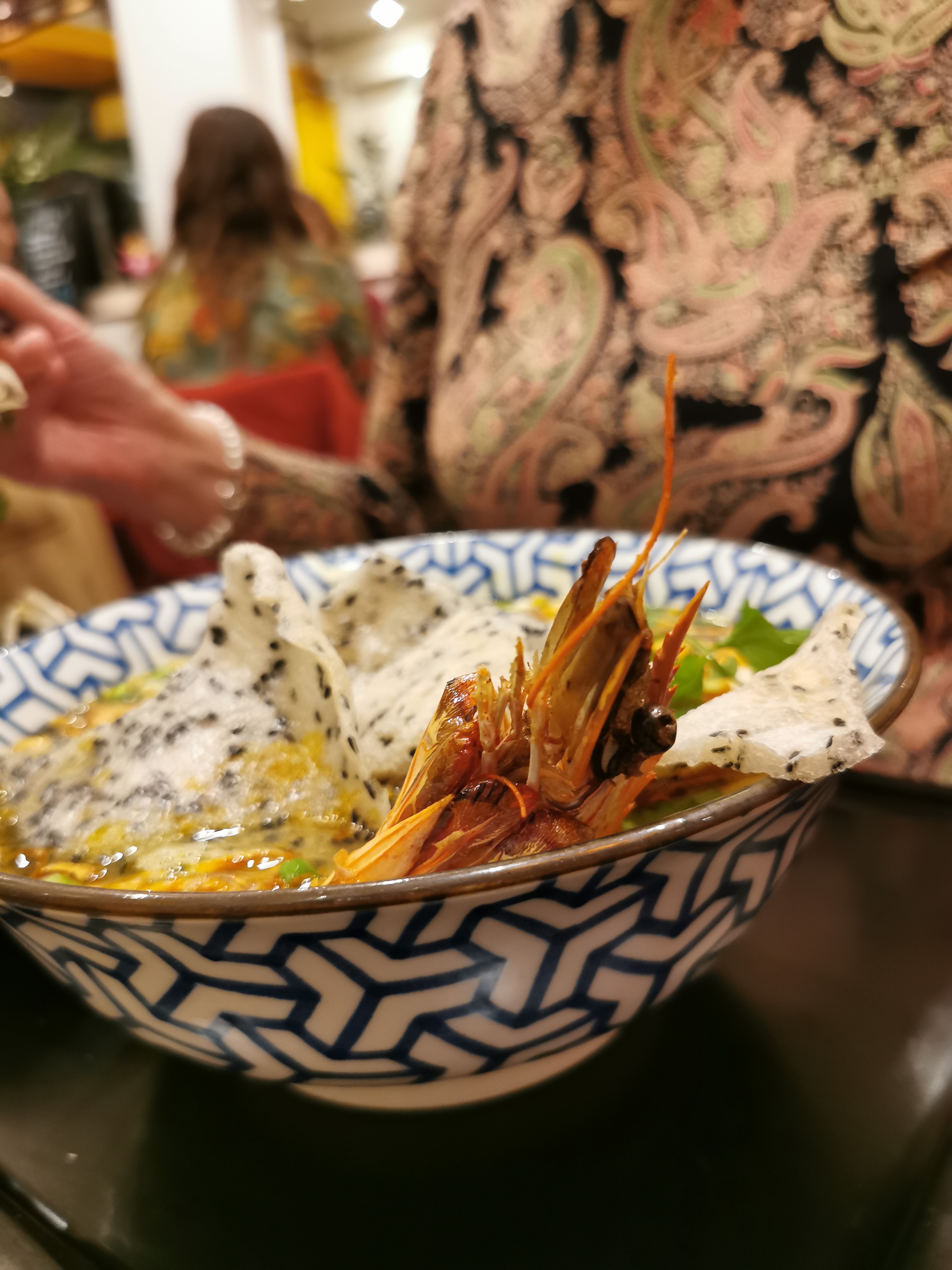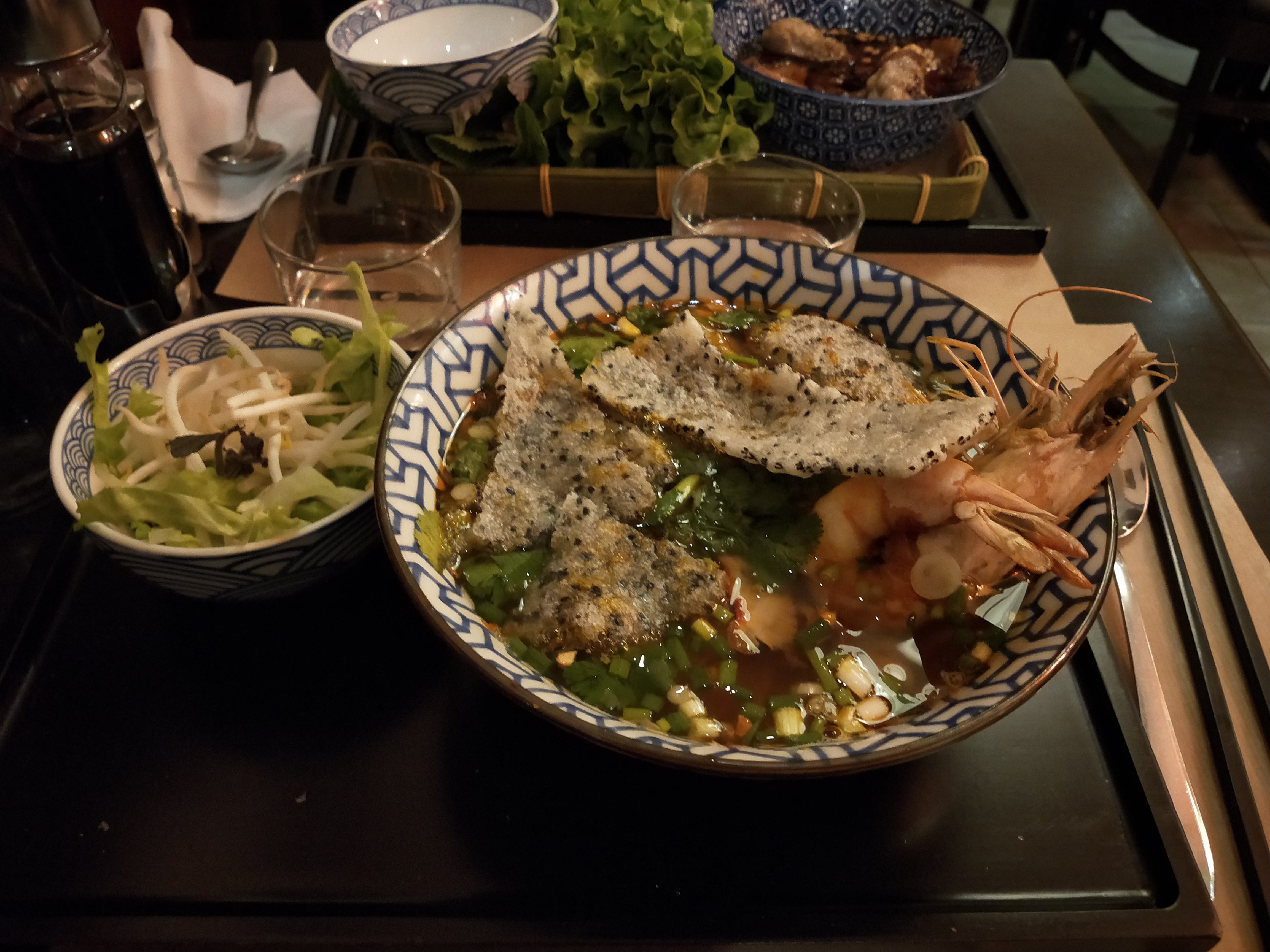 L'entrée pâte de riz aux crevettes est bonne. Mais le plat principal soupe épaisse aux crabes et crevettes n'est vraiment pas à la hauteur. On n'a pas trouvé la moindre miette de crabe...le cadre est sympathique en revanche. dommage
