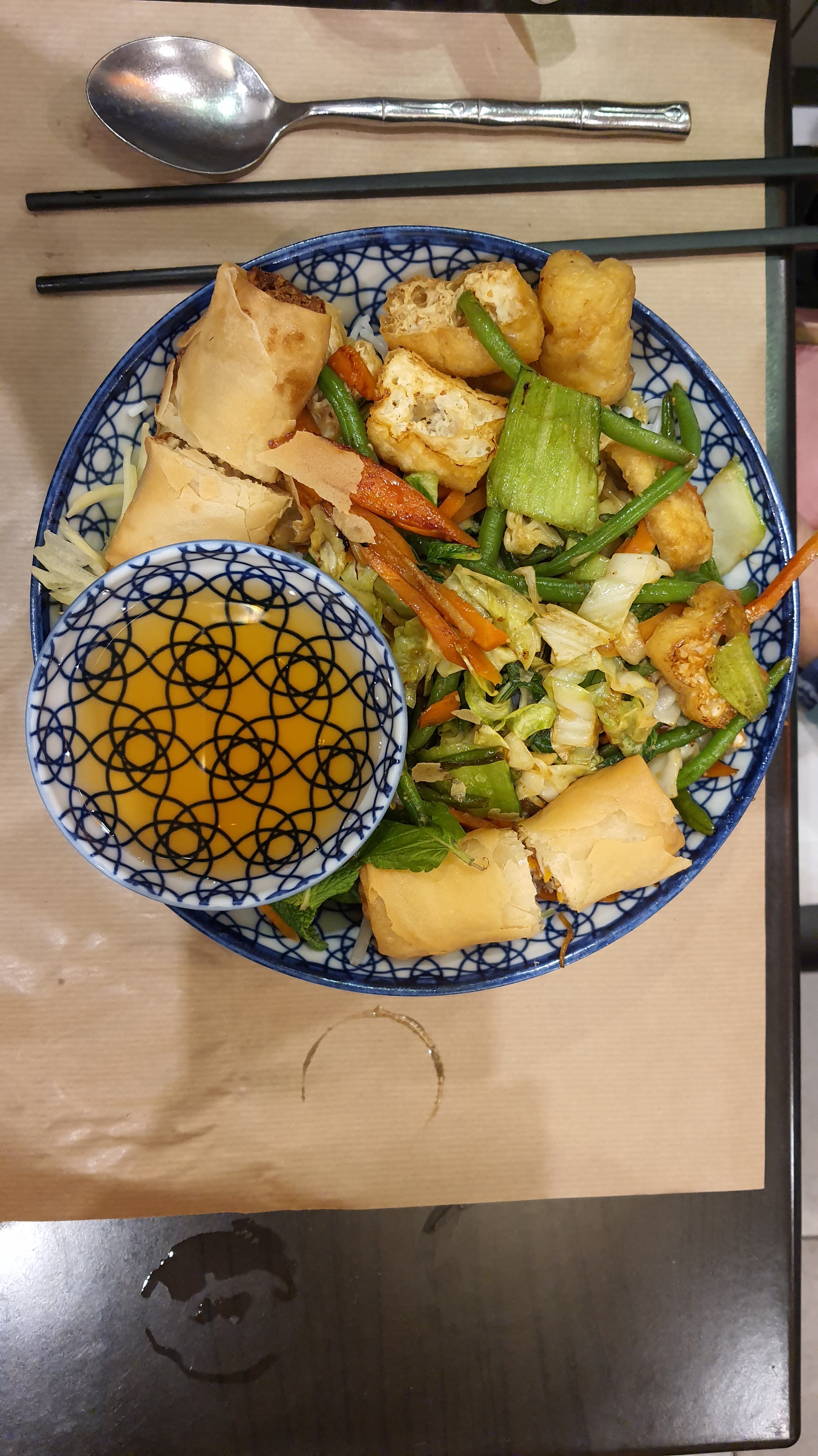 Très très bon bo bun végétarien. Les rouleaux de printemps valent aussi le détour. Les produits sont frais et respectés, bravo.